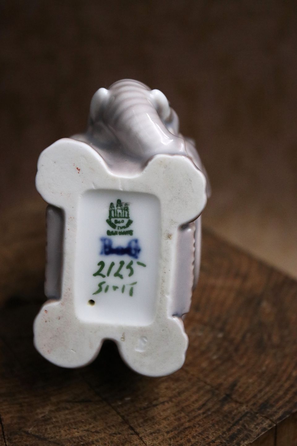 Bing & Grøndahl porcelænsfigur i form af elefant med grå glasur...