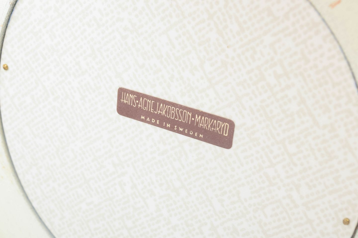Mærkning: Etikette “Hans-Agne Jakobsson, Markaryd, Made in Sweden”