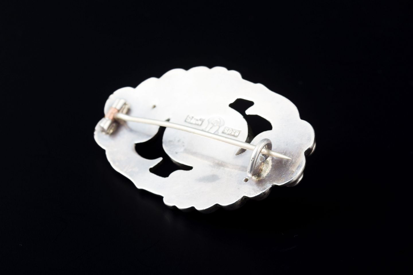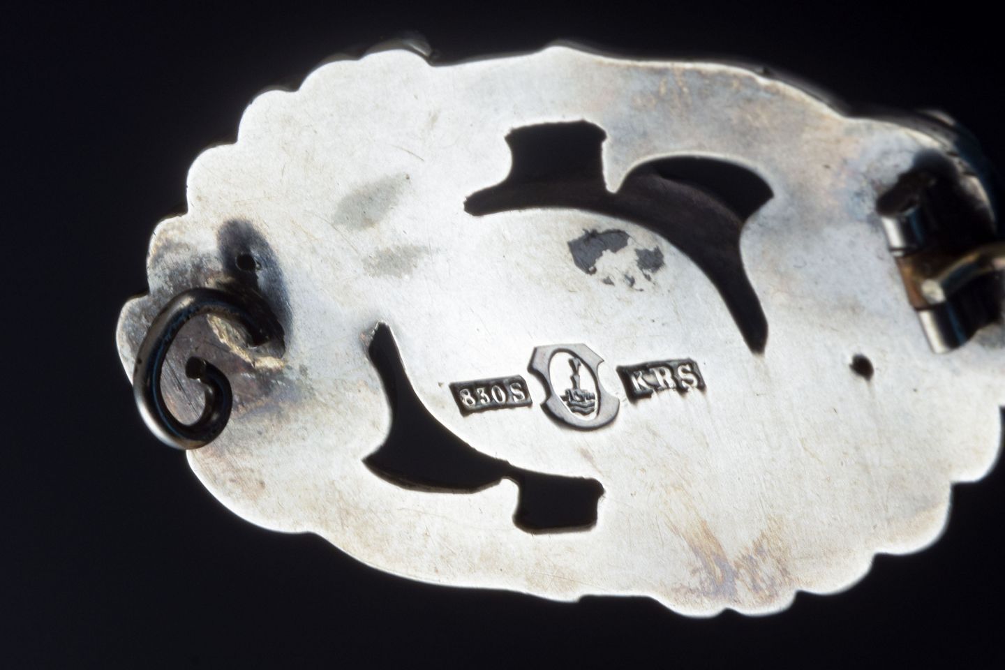 En sjælden og tidlig sølvbroche af Kaj Bojesen fra hans tid som sølvsmed i Randers, før han blev internationalt kendt for sine træfigurer. Smykket fremstår i en usædvanlig flot stand og kan betegnes som værende af museumskvalitet.