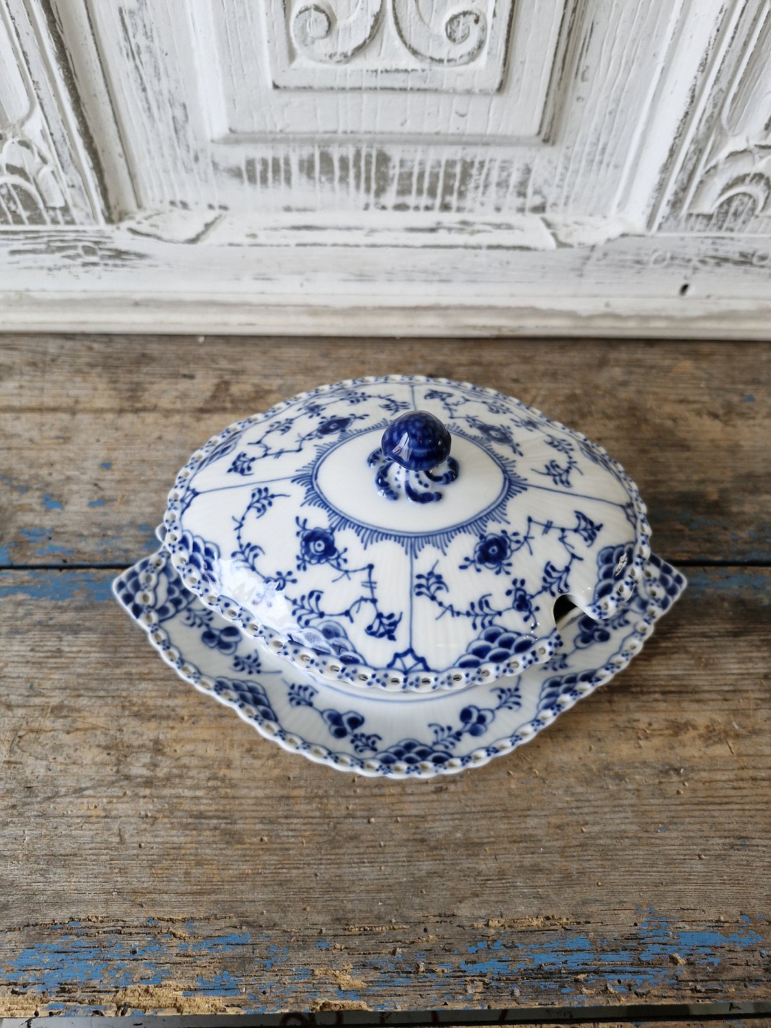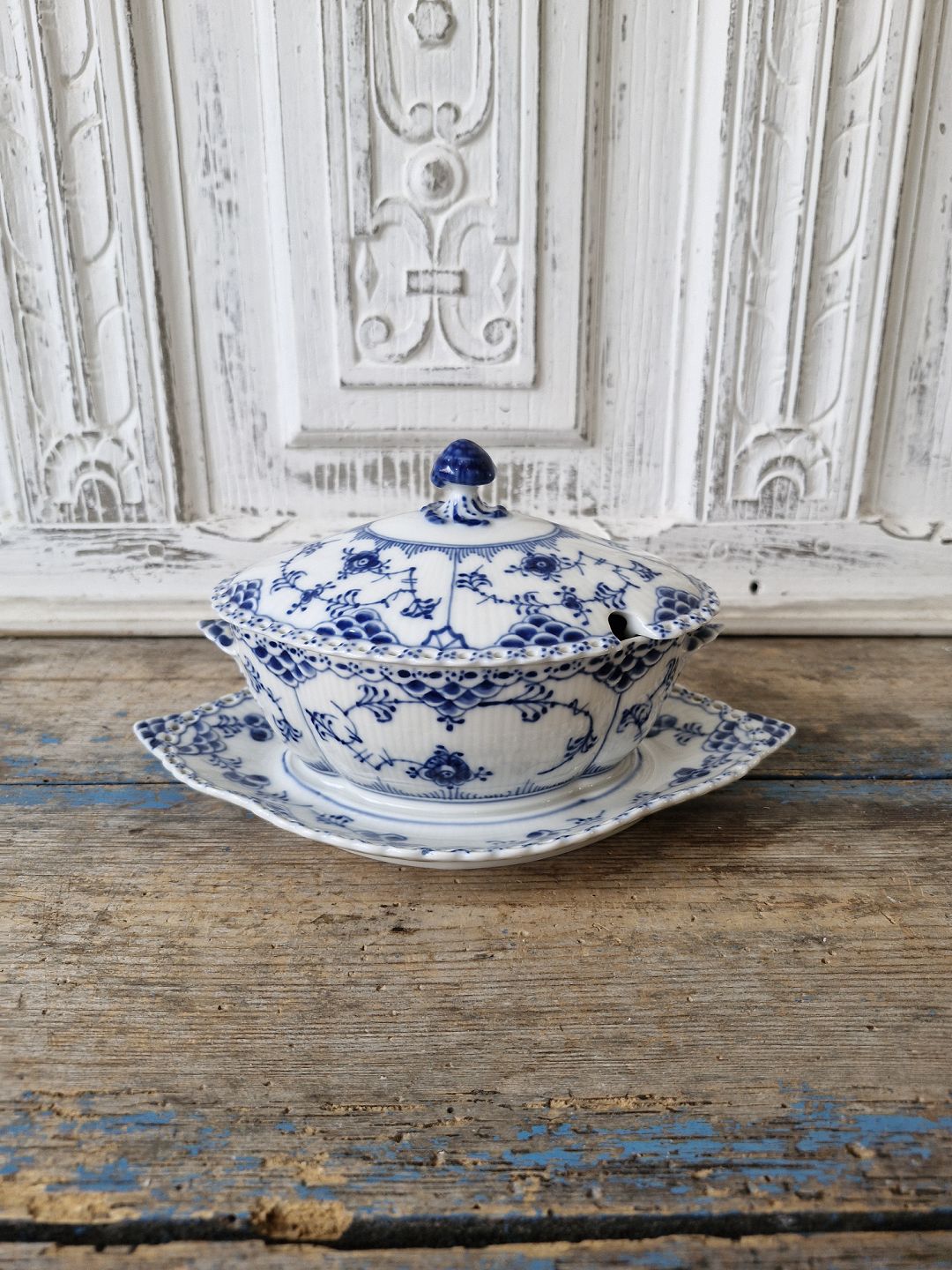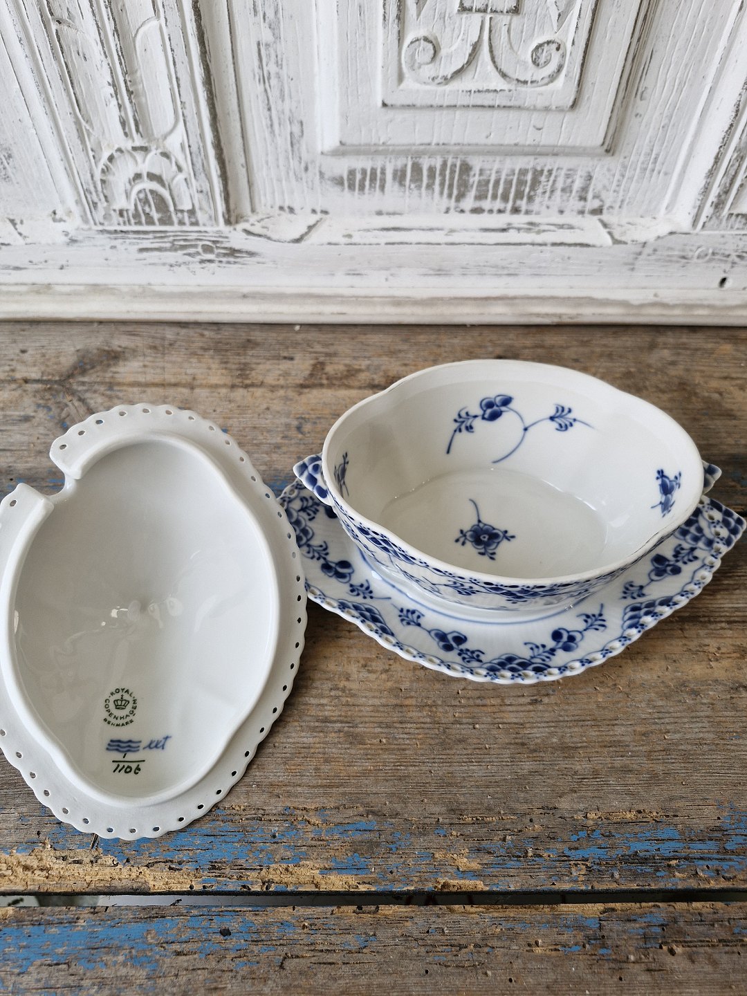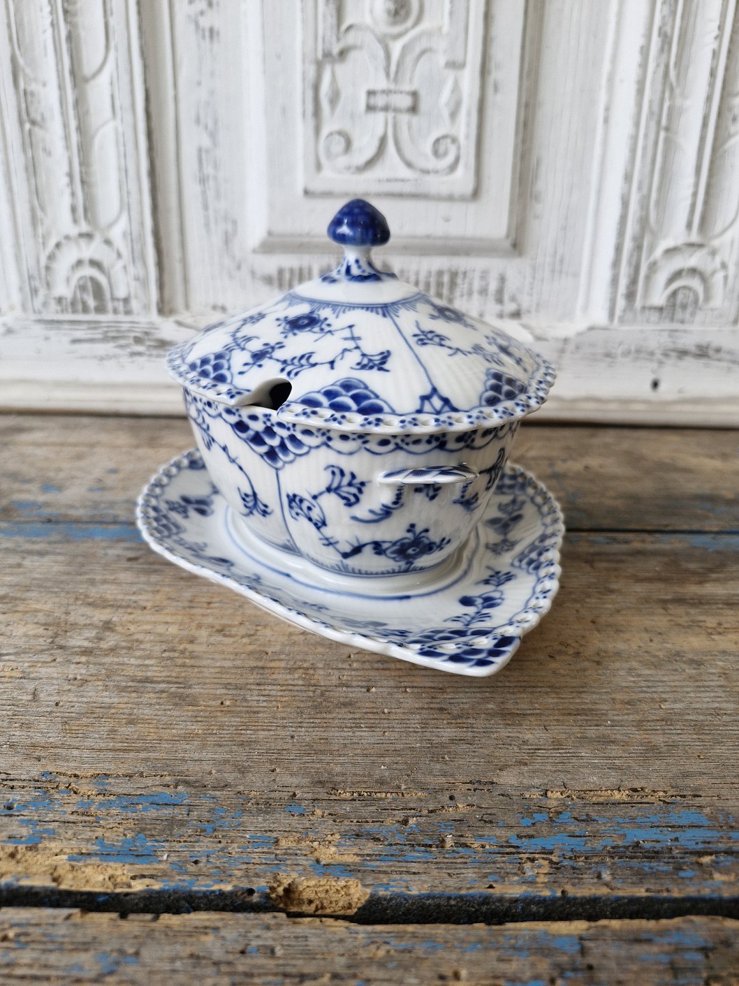 Royal Copenhagen Musselmalet helblonde sauceskål med låg no. 1106