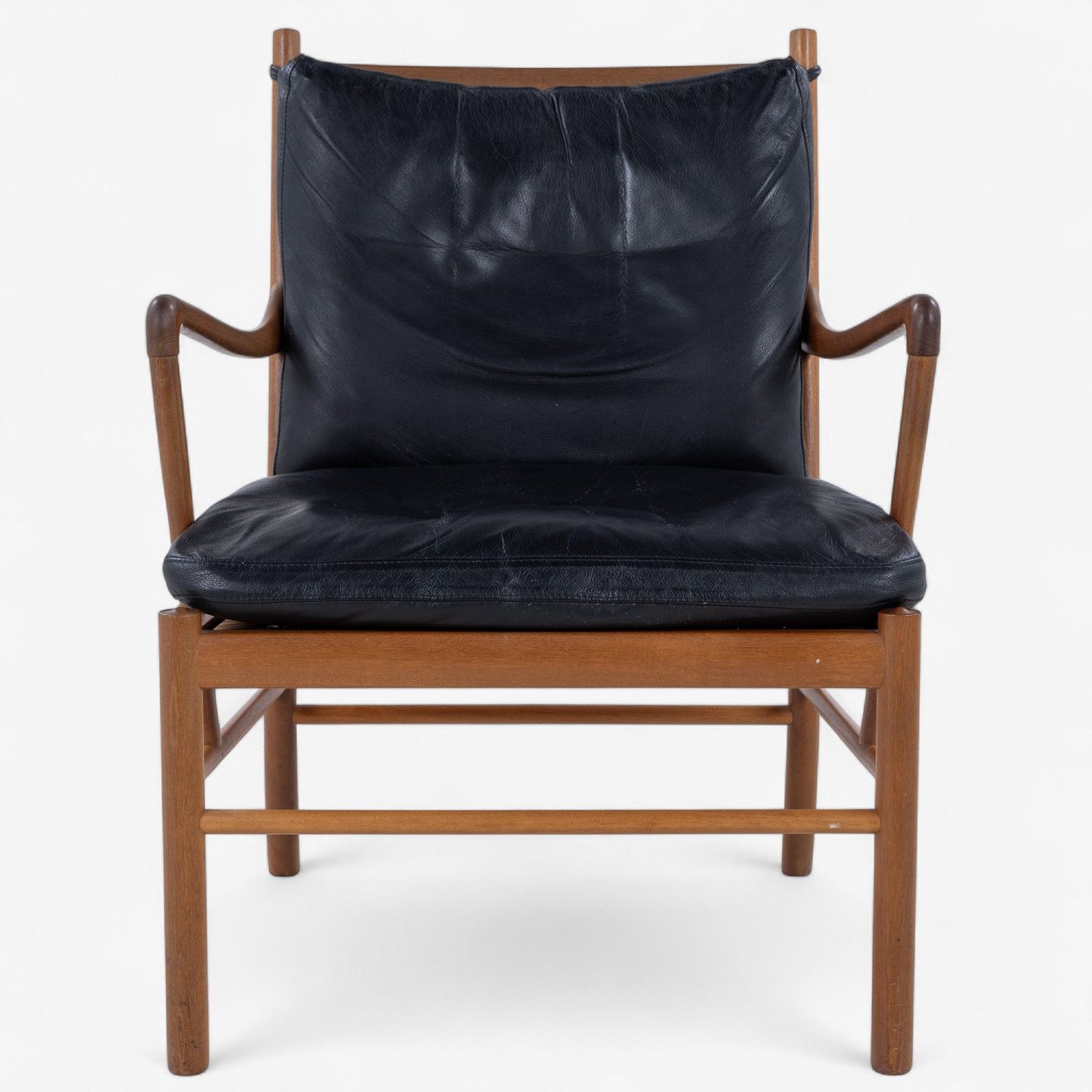 PJ 149 - 'Colonial Chair'-lænestol i mahogni med hynder i sort patineret læder.