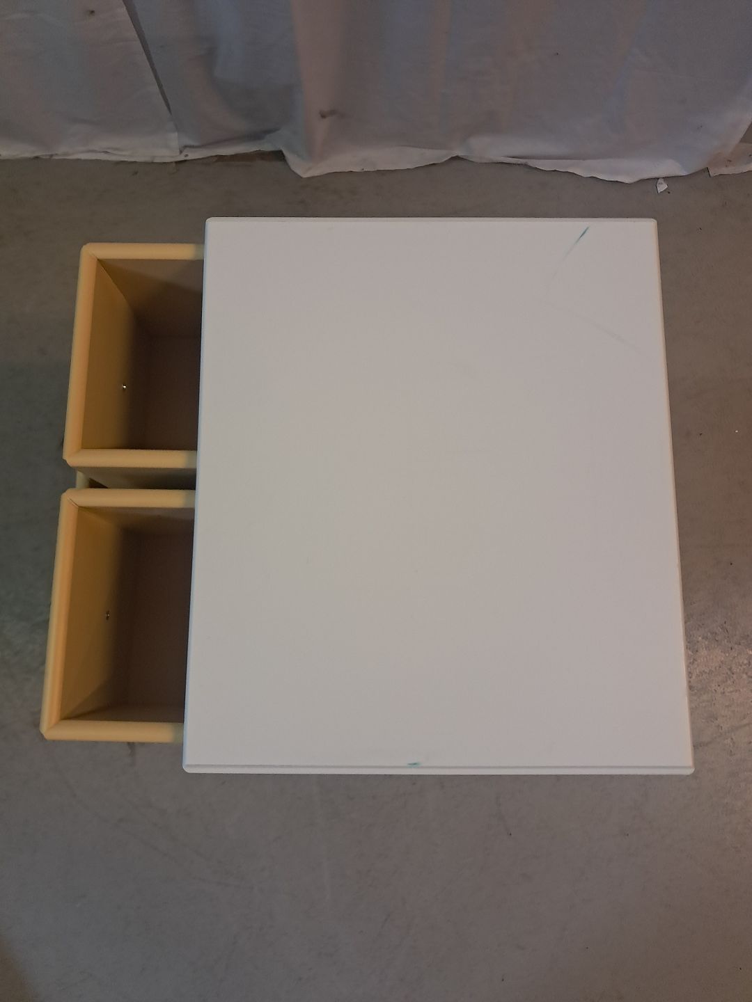 Den har brugsspor og der medfølger ikke ophæng.( skufferne passer til CDér)