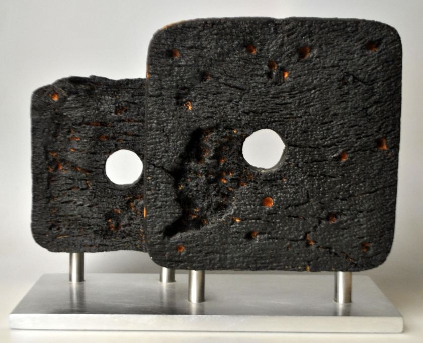 Winther, Poul (1939 - 2018) Danmark: 'Twin floater' skulptur. Signeret: Paul Winther Skagen. Lavet af strandingsgods af støbt materiale/plast & aluminium fundet omkring Skagen. Støbt hos Rikki Tikki. H: 22 cm. B: 28 cm. D: 12 cm.