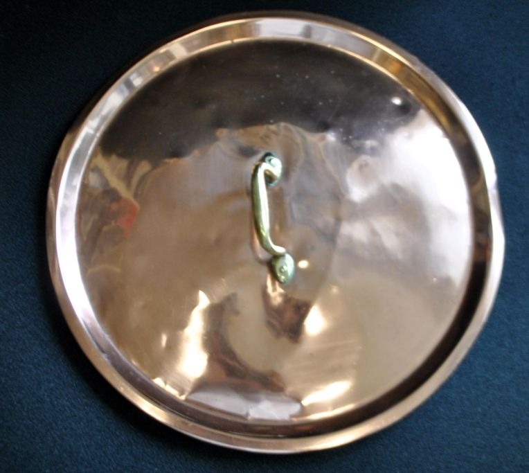 Antikt kobber låg til gryde, 19. årh. Danmark. Med messing hank. Indvendig fortinnet. Dia.: 27 cm.