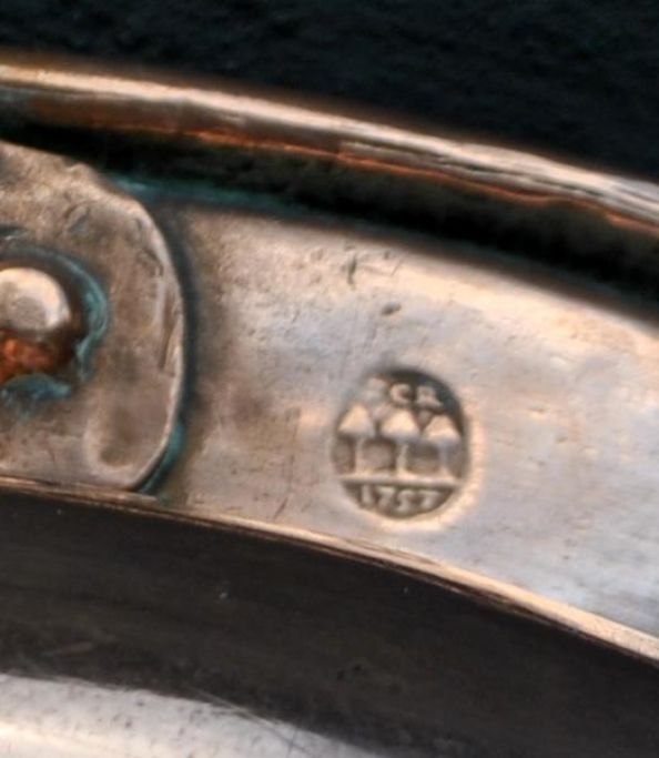 Stort dansk antikt mælkefad, 1757. Med mesterstempel og bystempel: JCR 1757. Med vægophæng. H.: 9 cm. Dia.: 38,5 cm. Vægt næsten 2 kg.