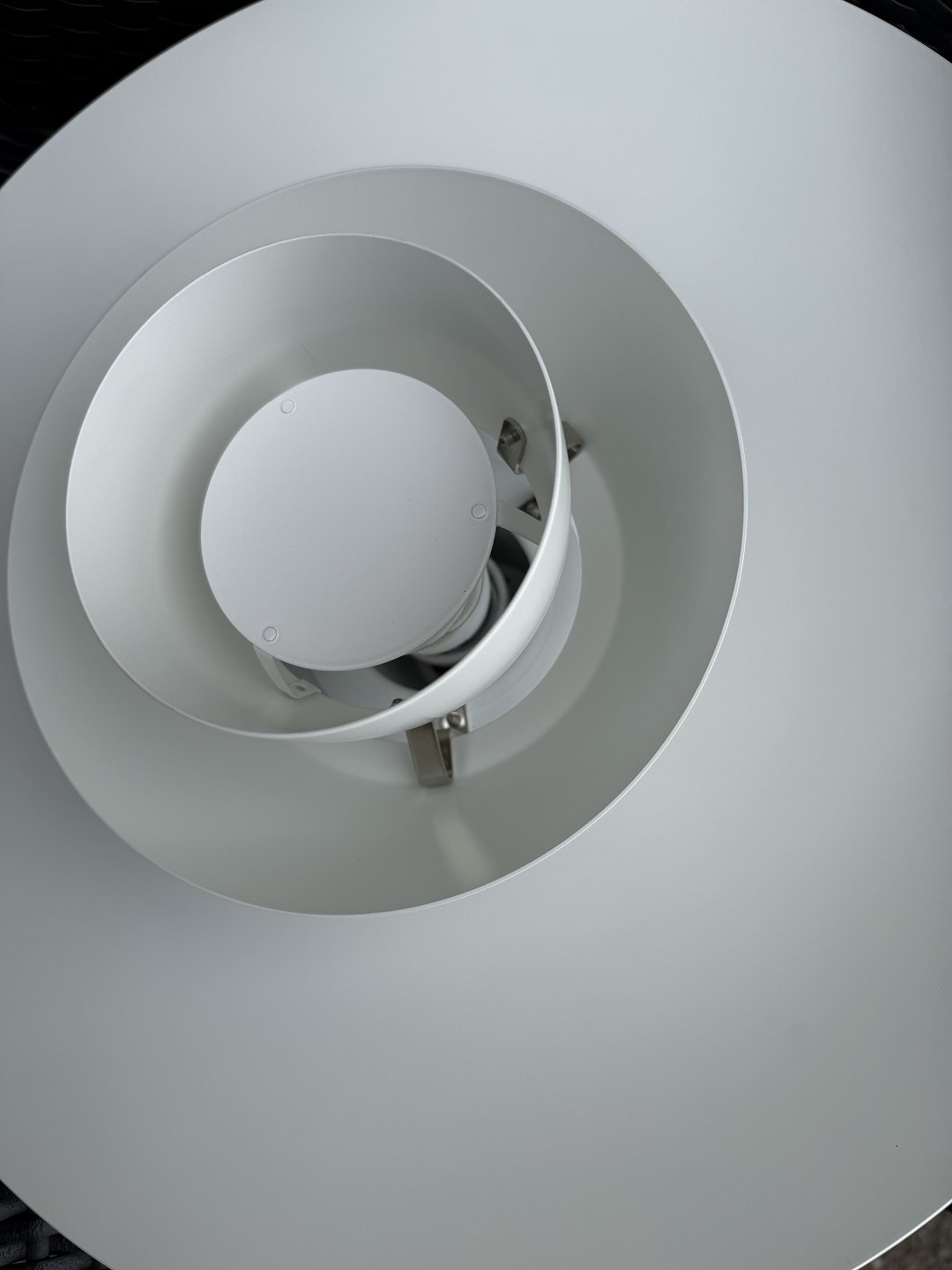 Hvid PH 4/3 lampe. Design Poul Henningsen og fremstillet hos Louis Poulsen. Fremstår i rigtig flot stand (se foto), Diameter 40 cm, højde 20cm.