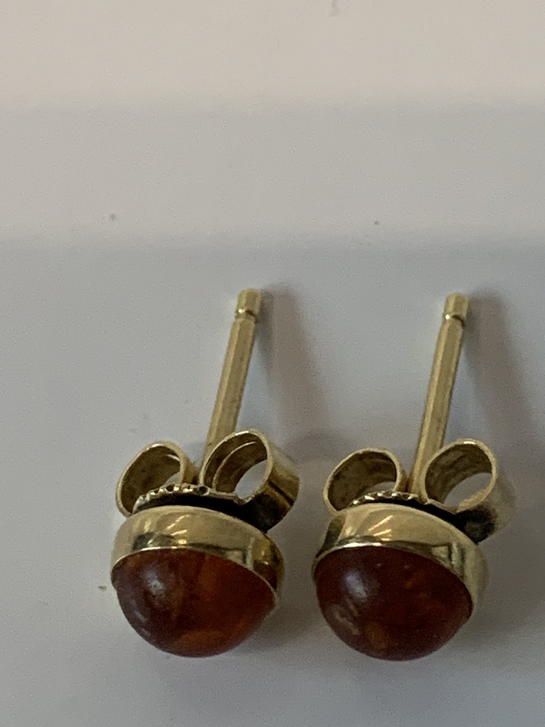 Guldøreringe i 14 karat guld, indlagt Rav.