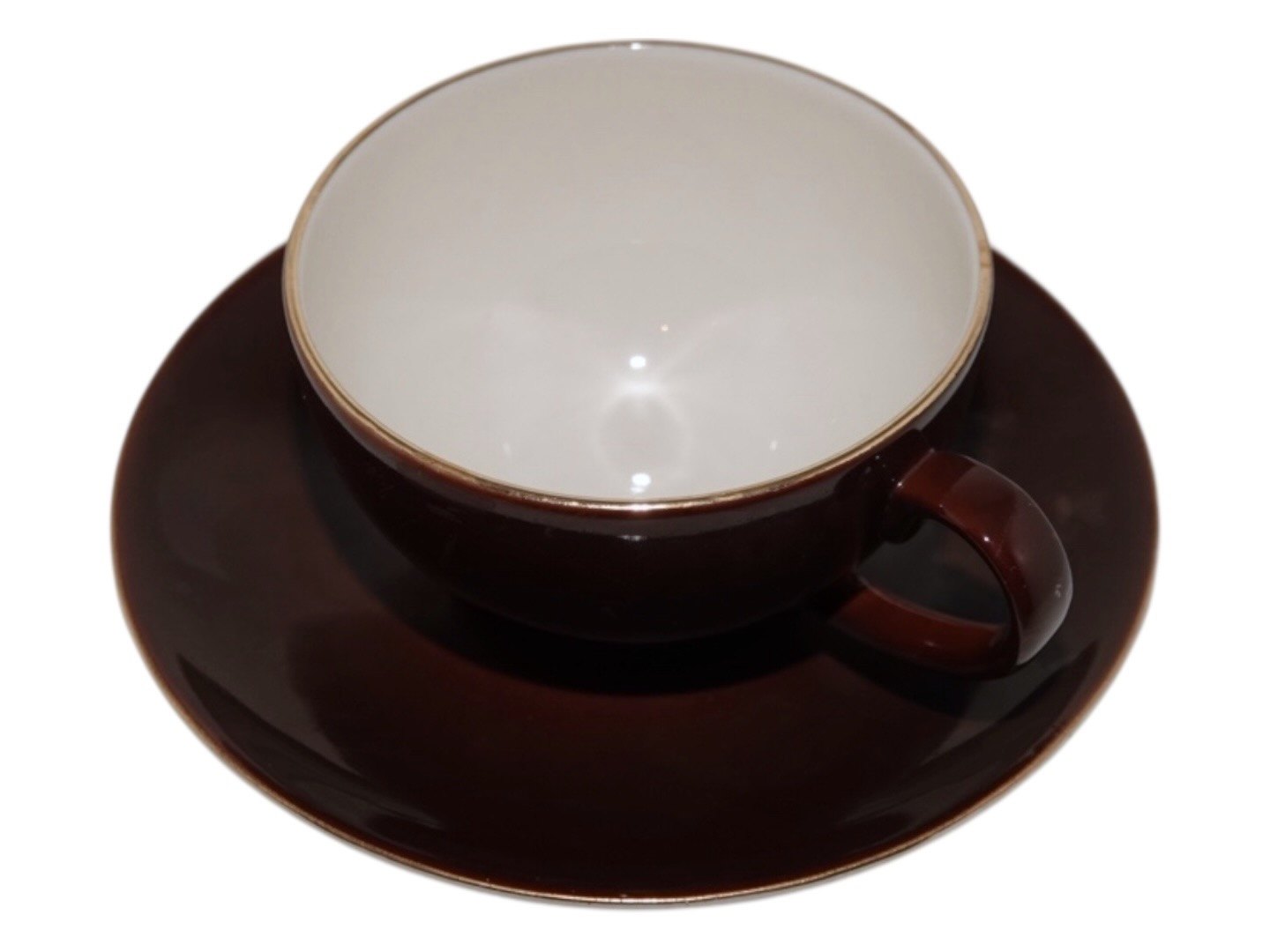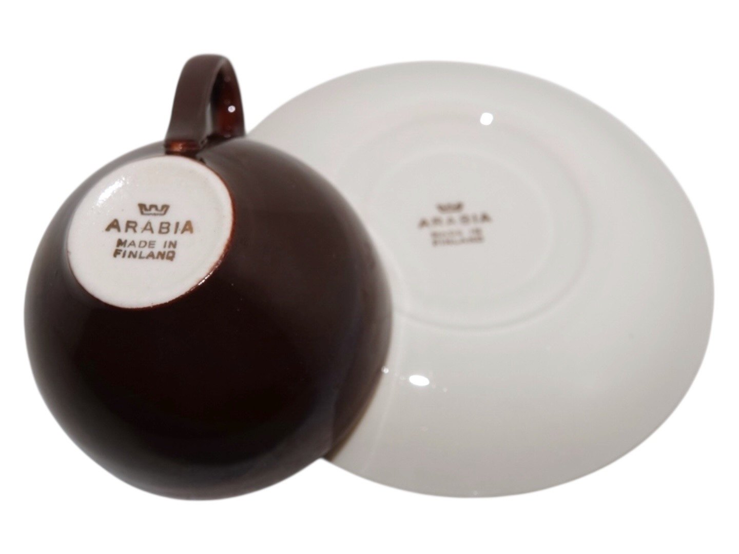 Arabia Finland, ekstra lille mørkebrun kop med tilhørende underkop.