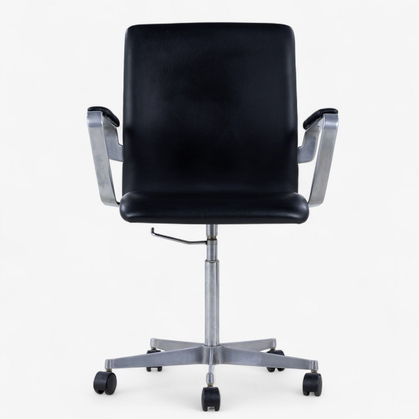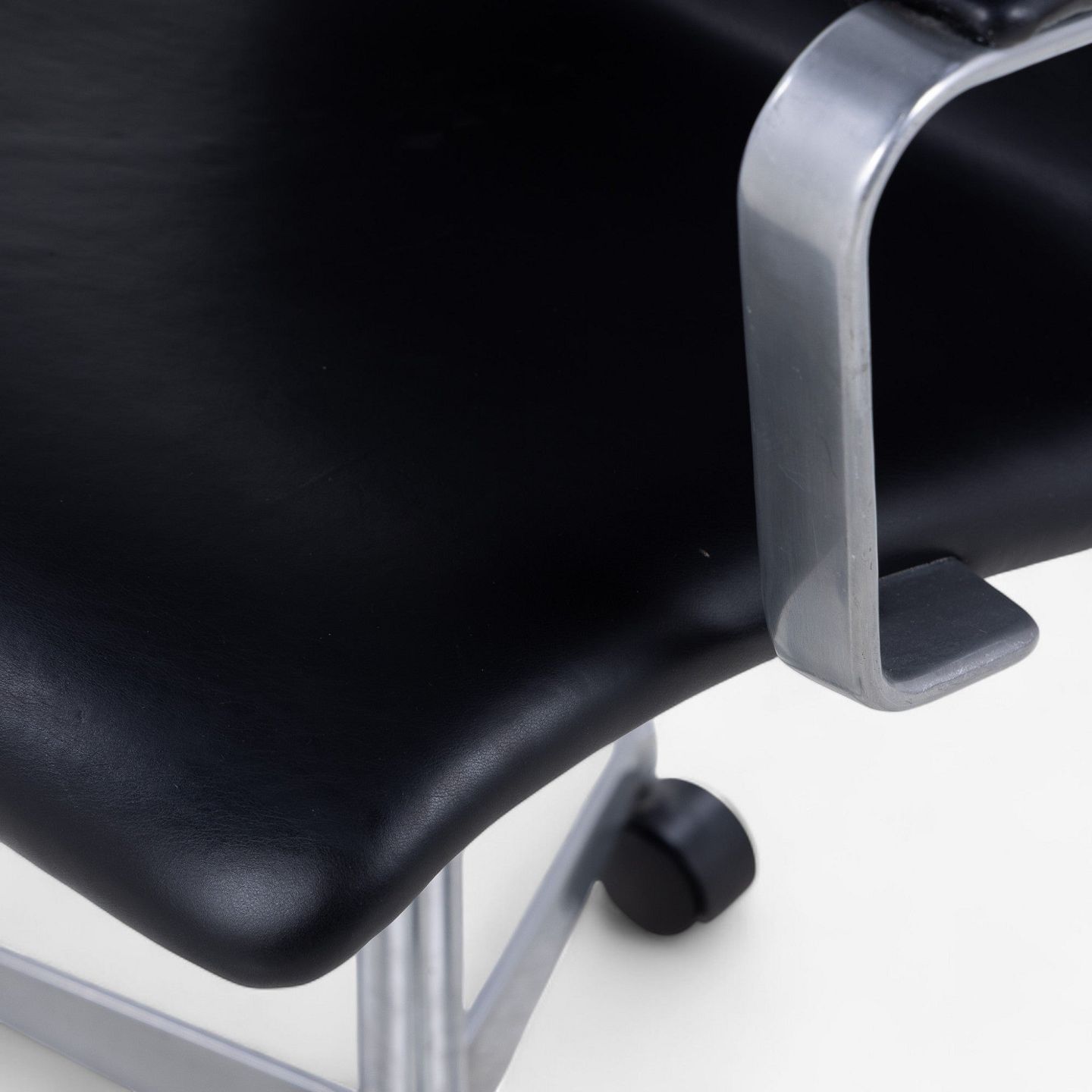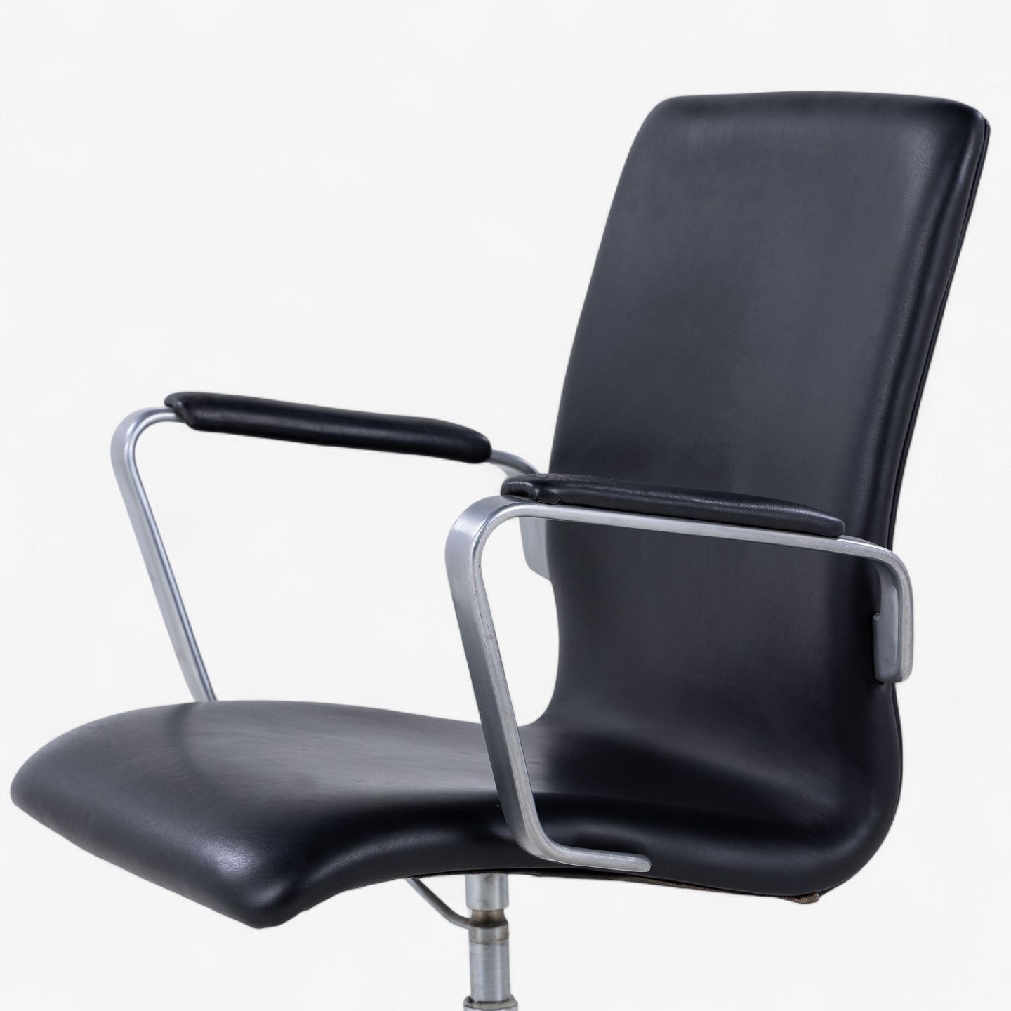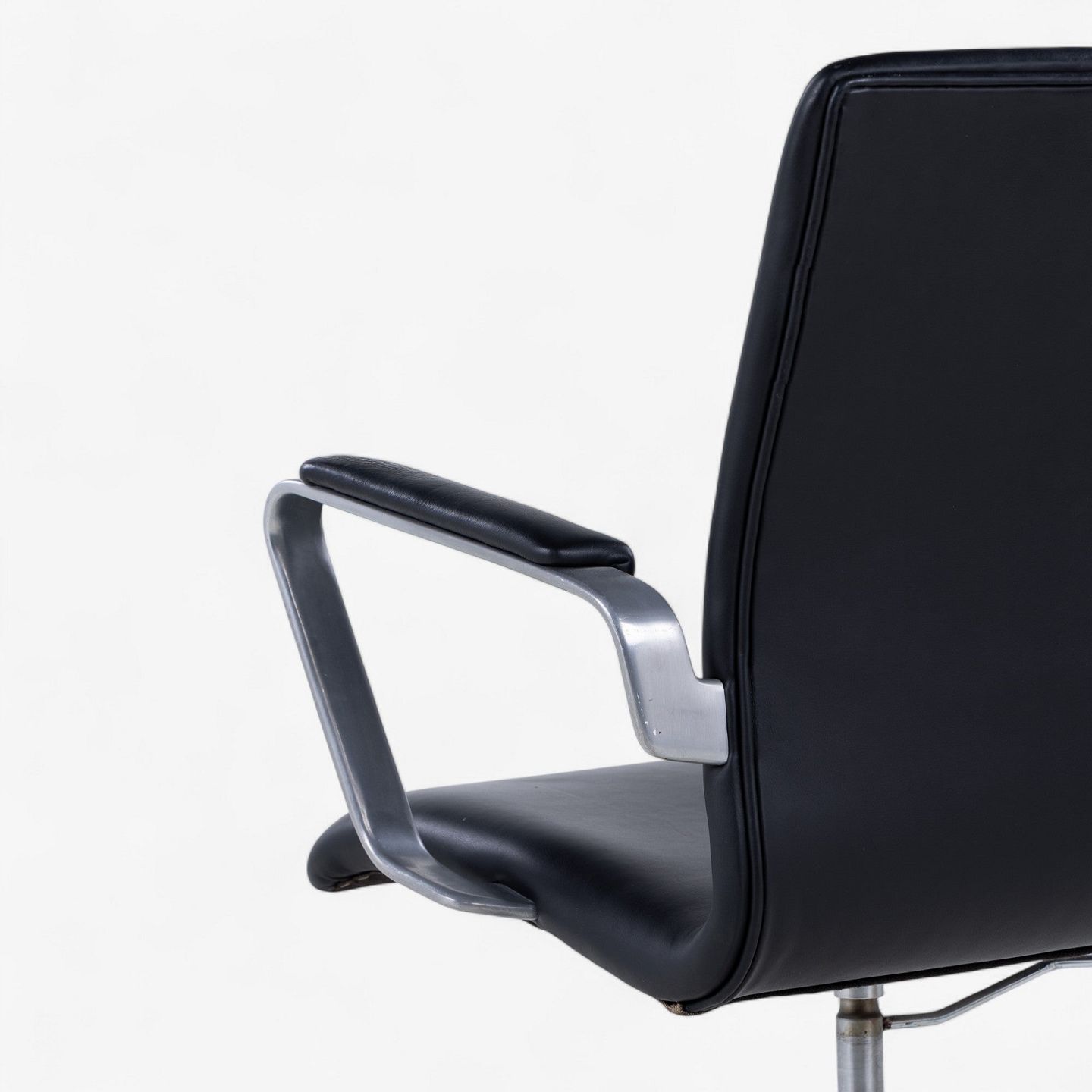 'Oxford'-kontorstol i stål med ryg, sæde og armlæn i sort læder. Mærket fra producent.