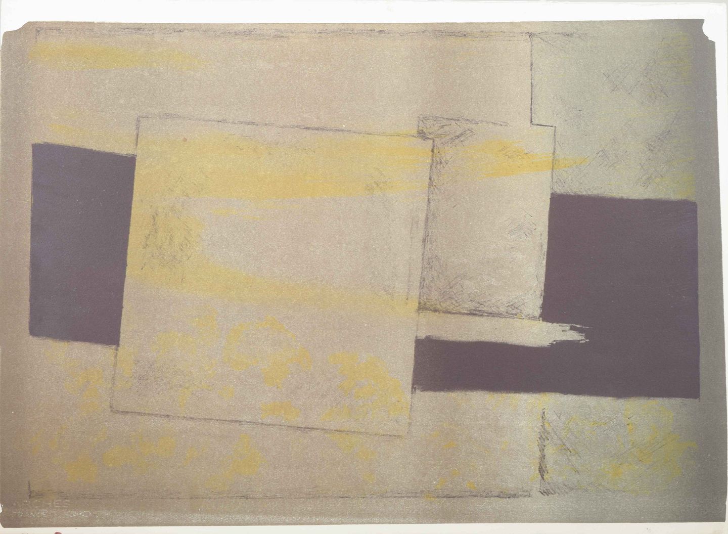 Abstrakt litografi på Arches-papir.