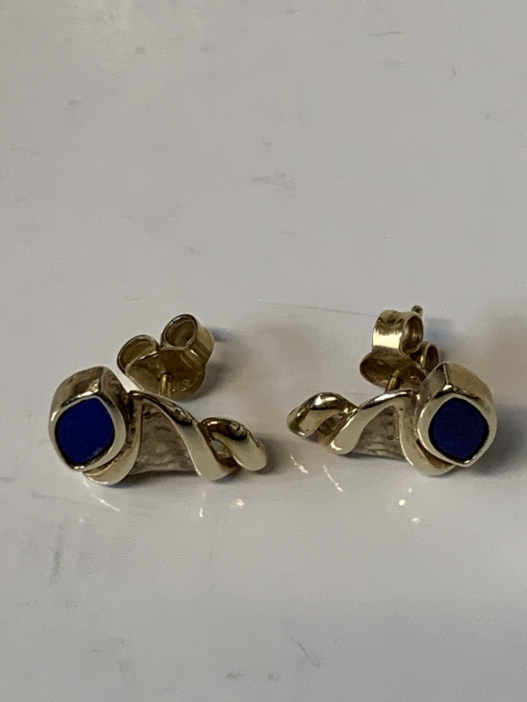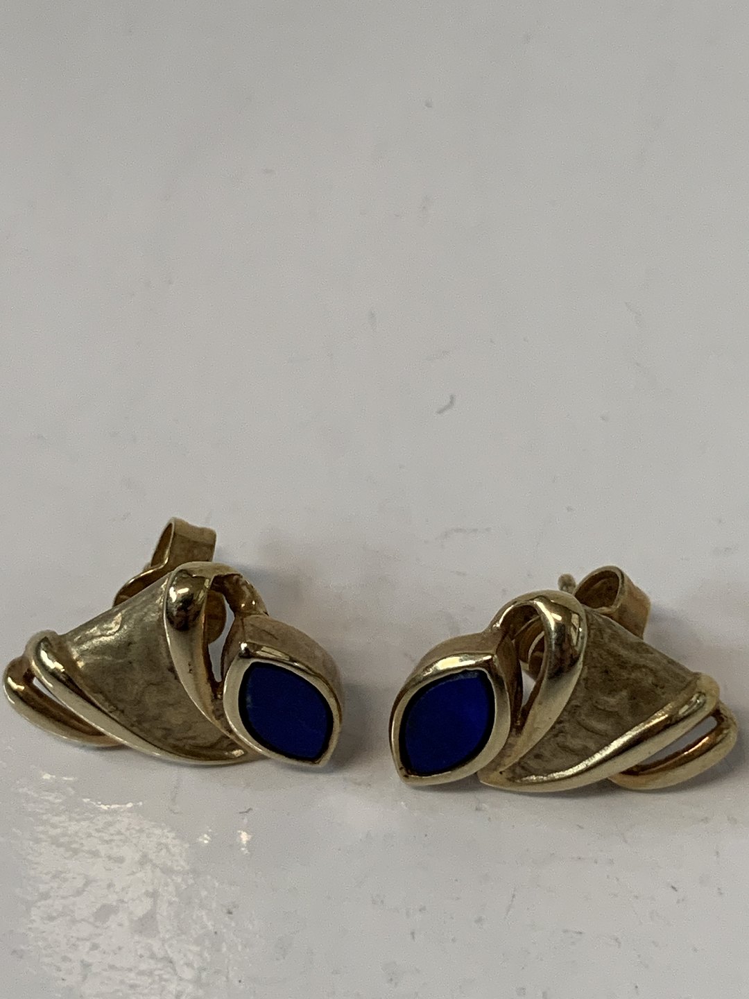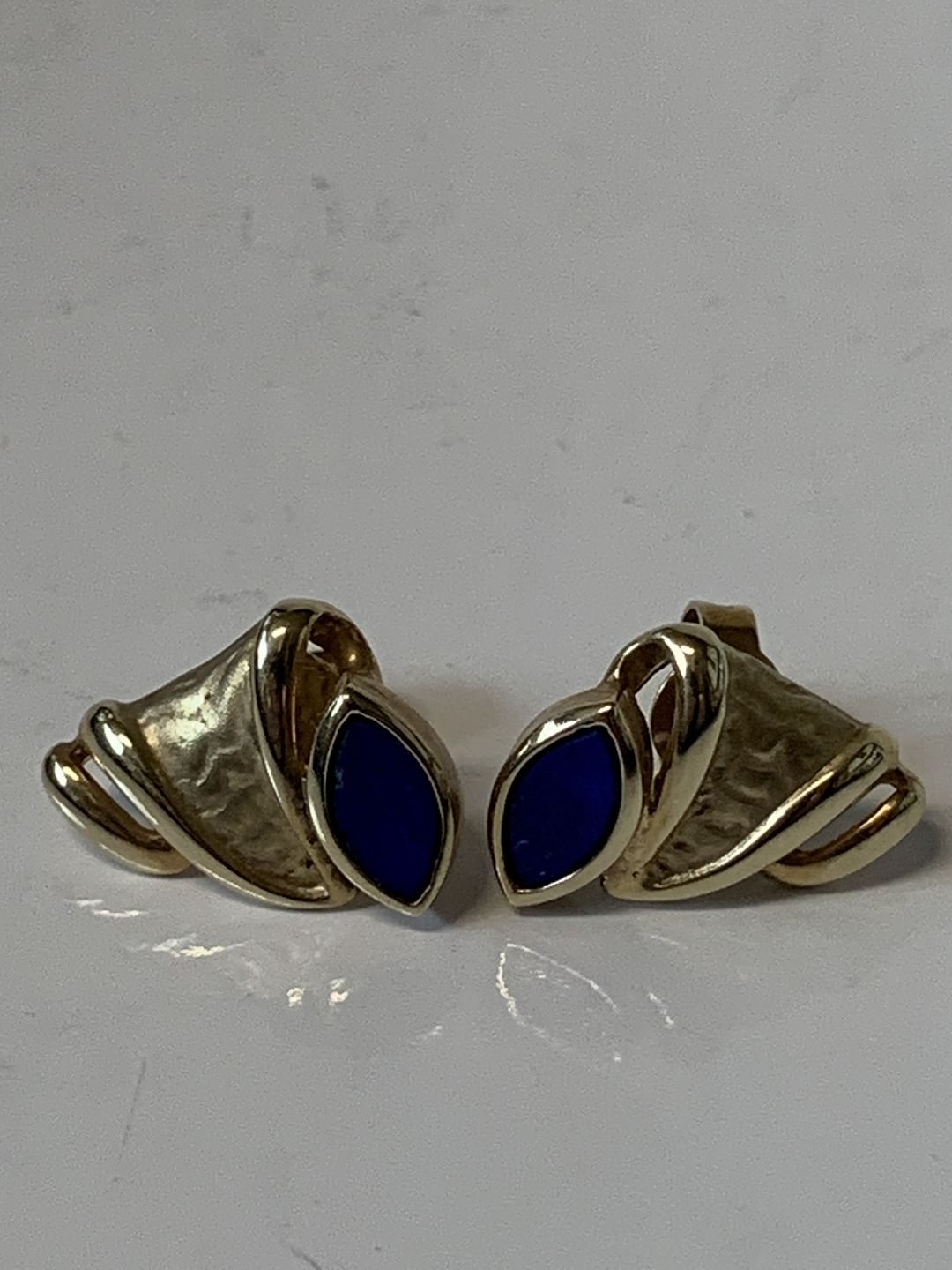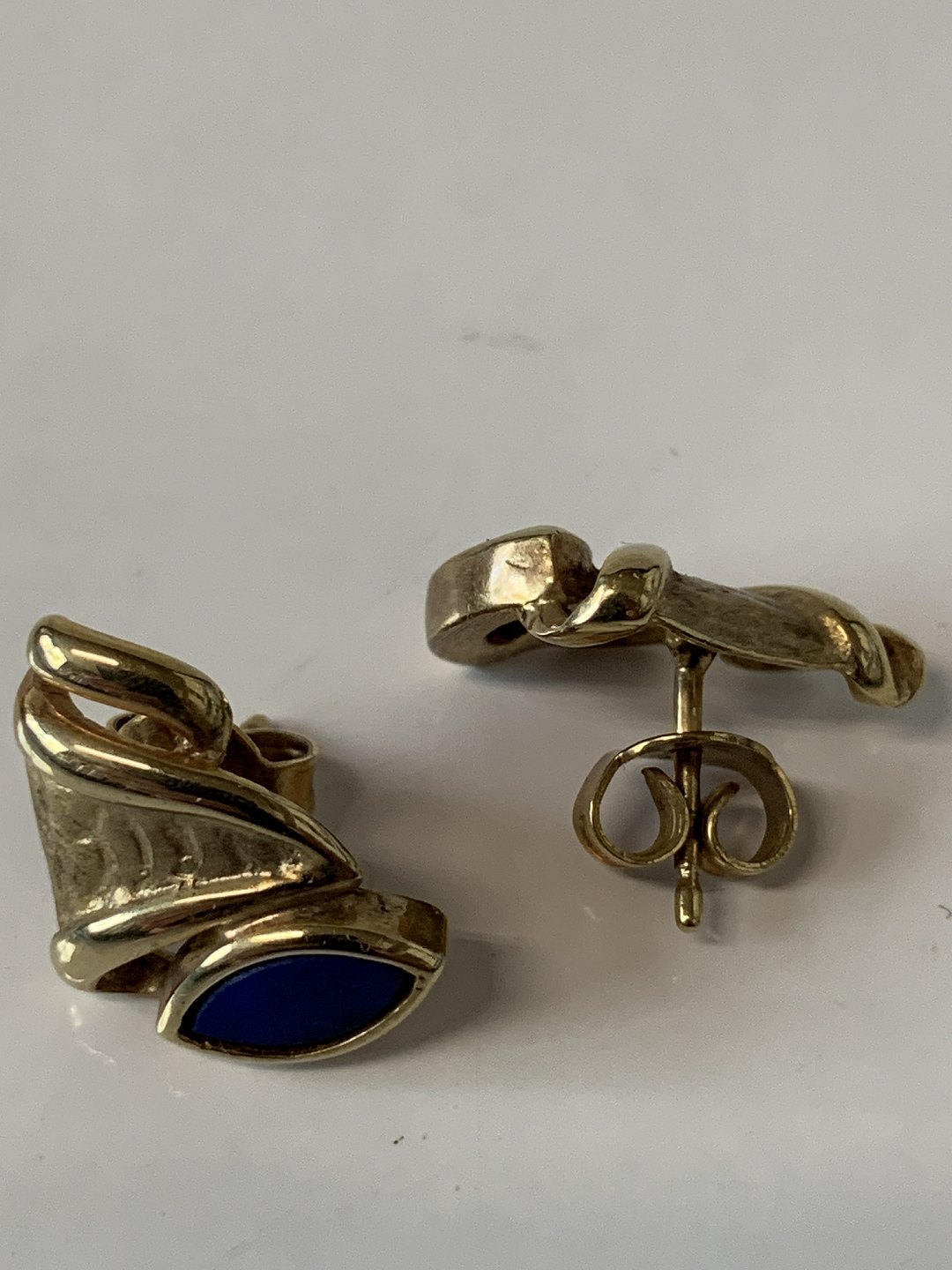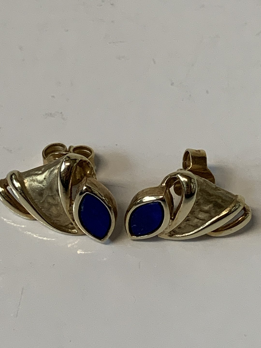 9 karat guld, Øreringe med en Lapis.