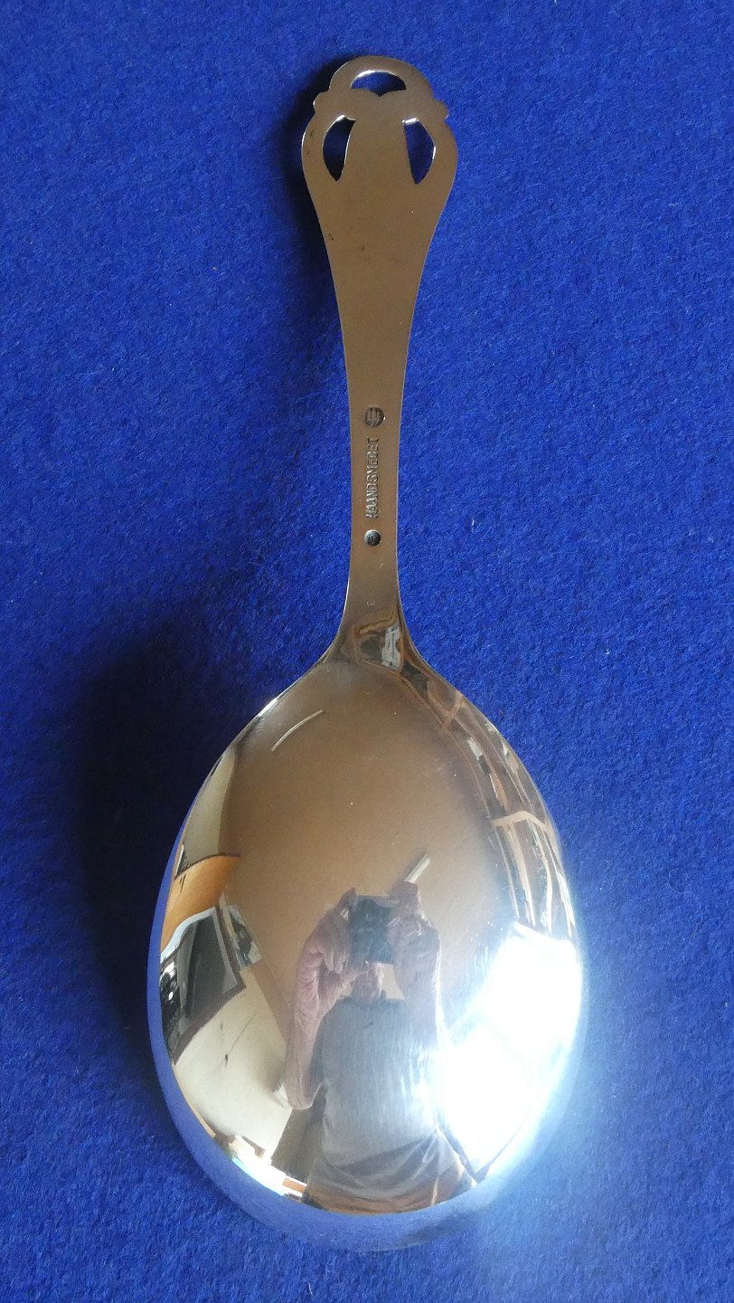 Dansk sølvbestik, serveringsske 21cm fra 1947, i håndsmedet sølv.