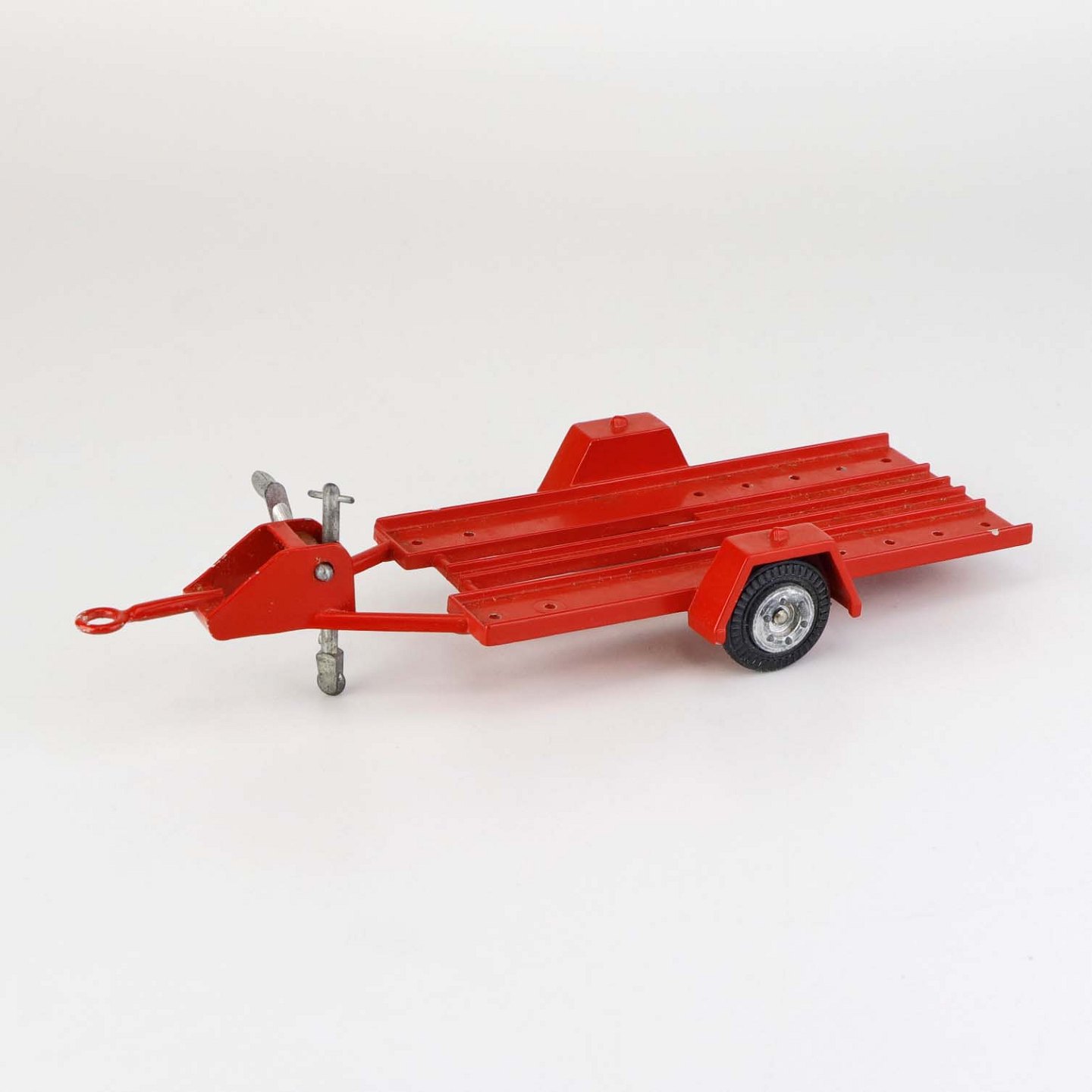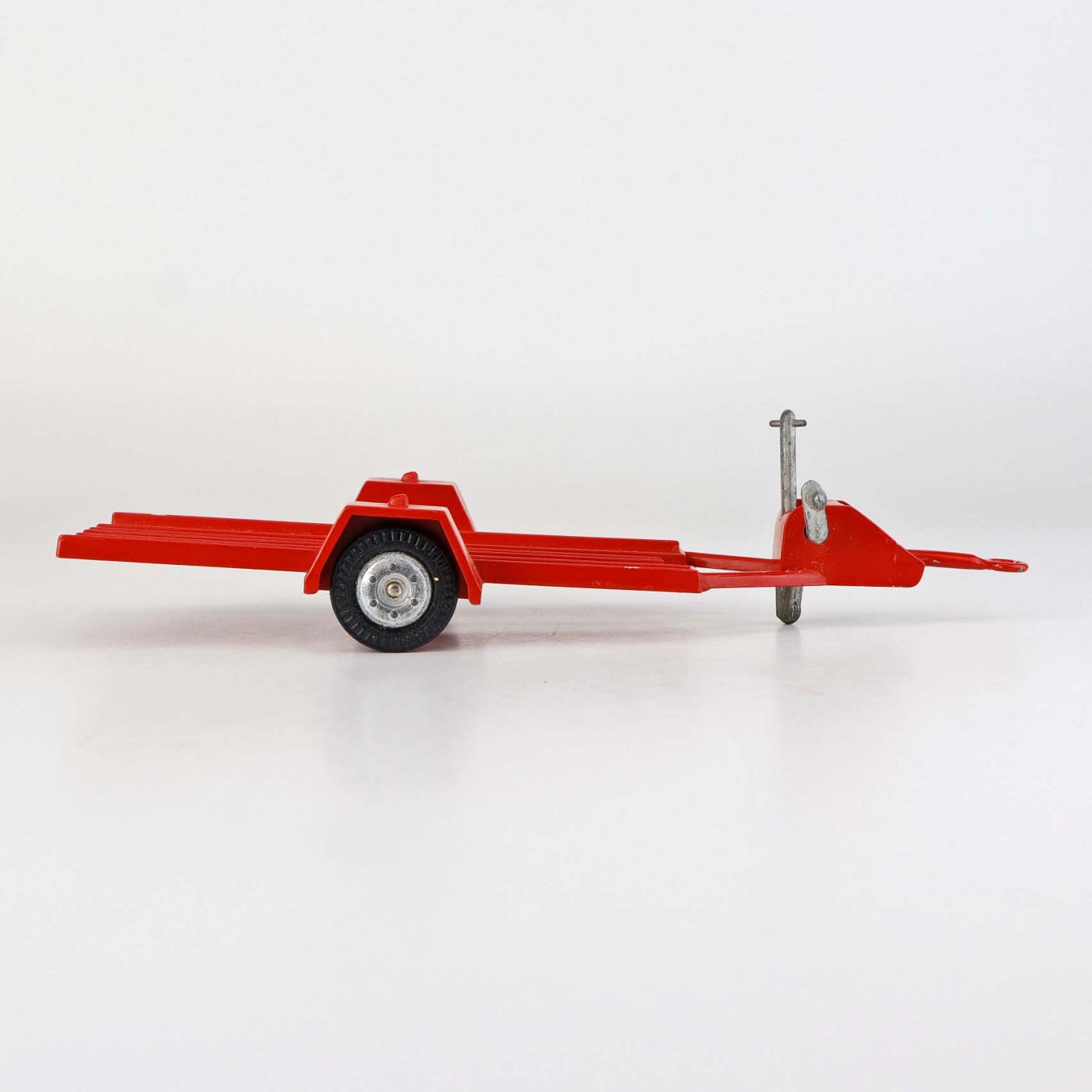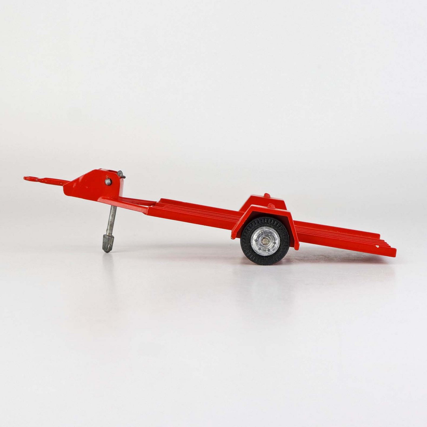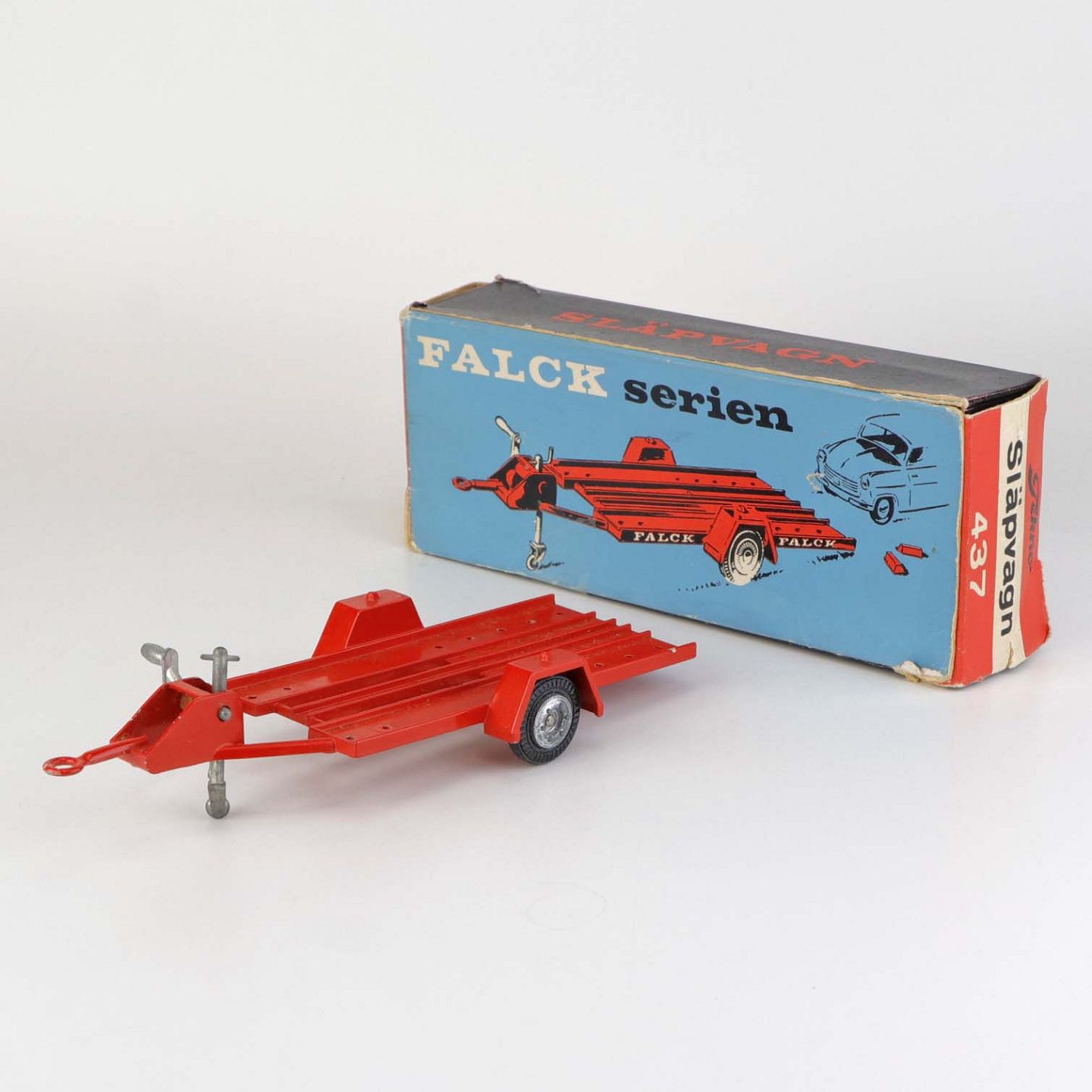Legetøjsbil. Biltrailer model Efterløber fra falck serien i rødlakeret metal med gummi hjul samt original boks. Nr. 437