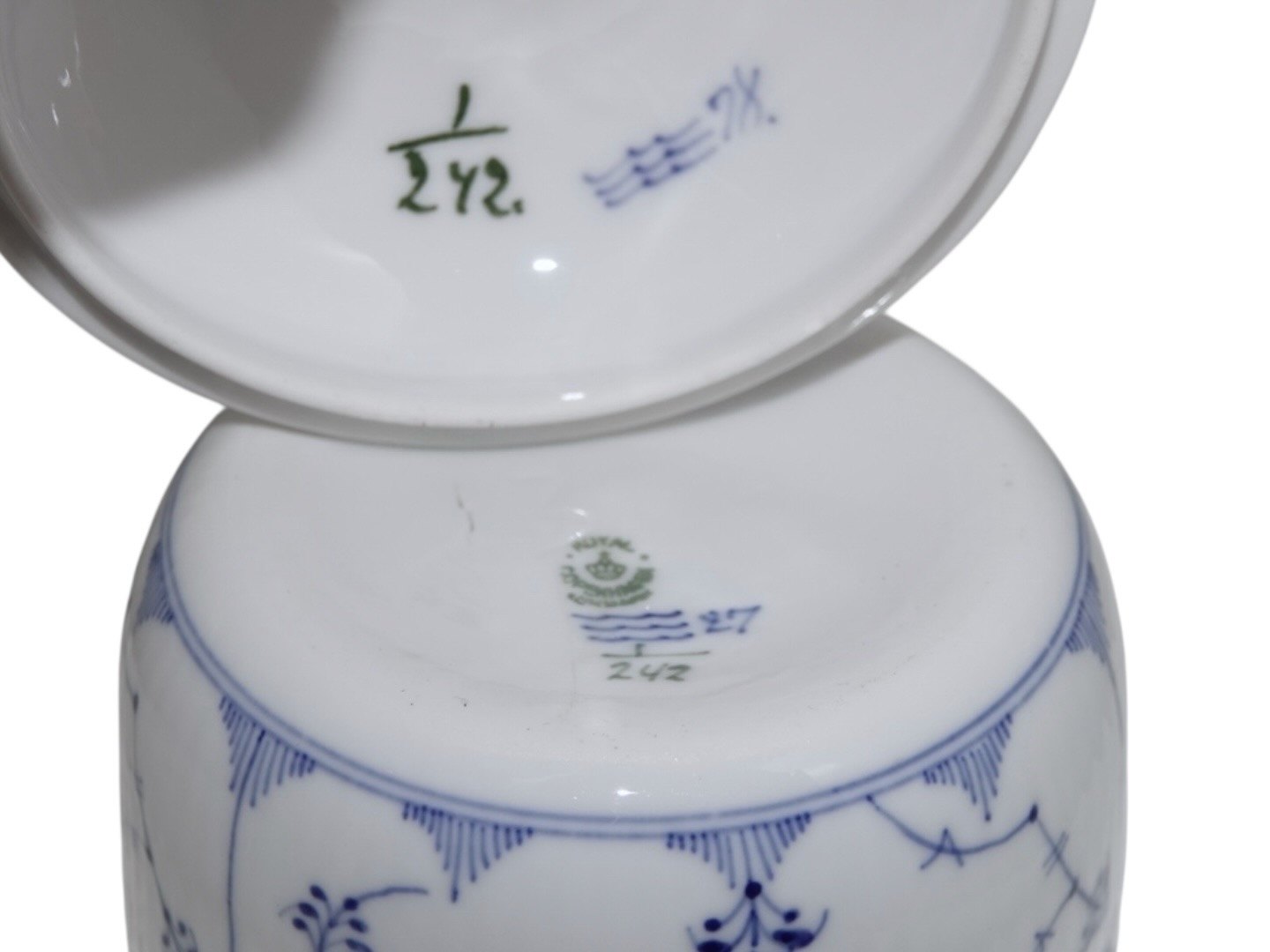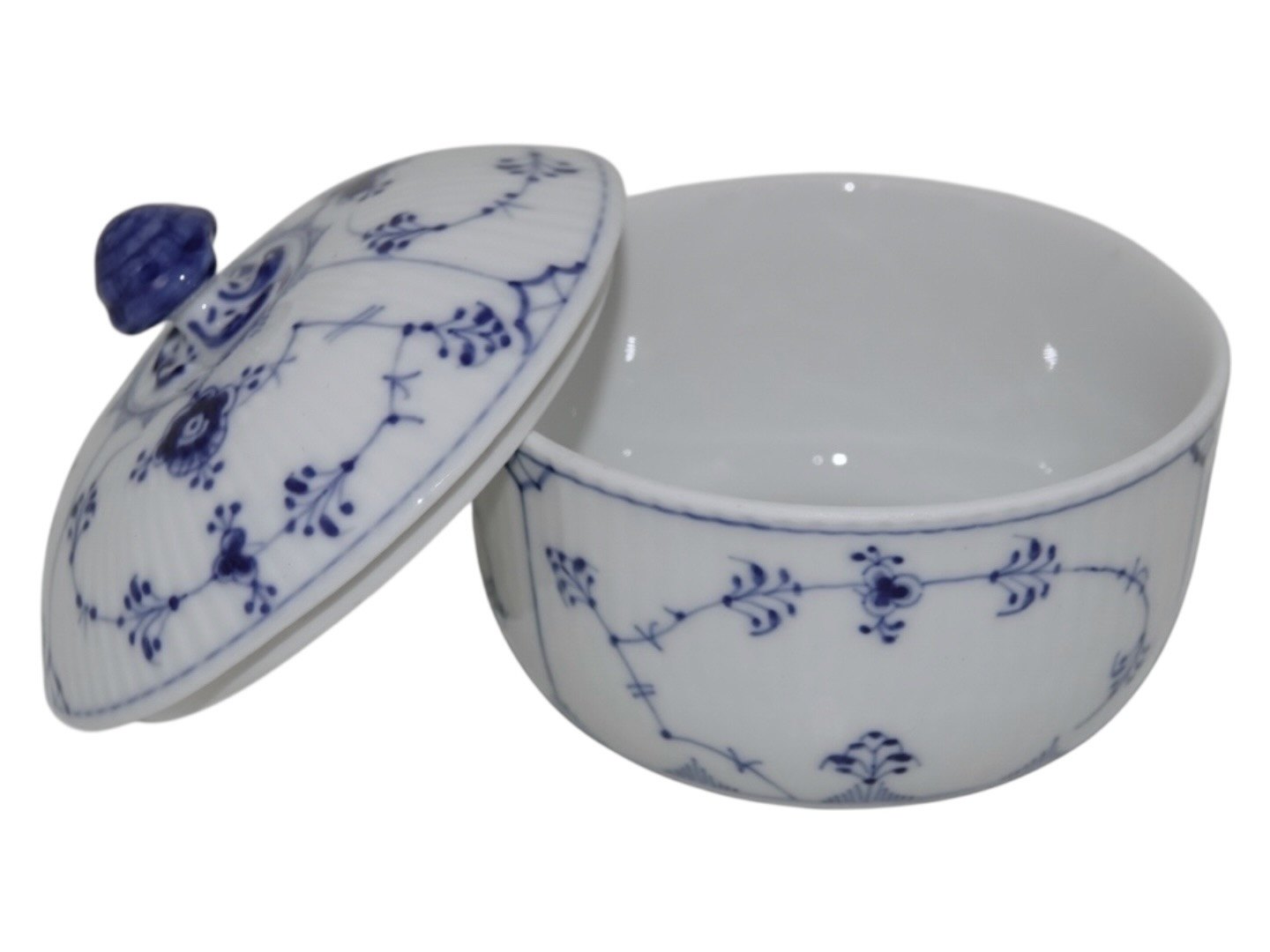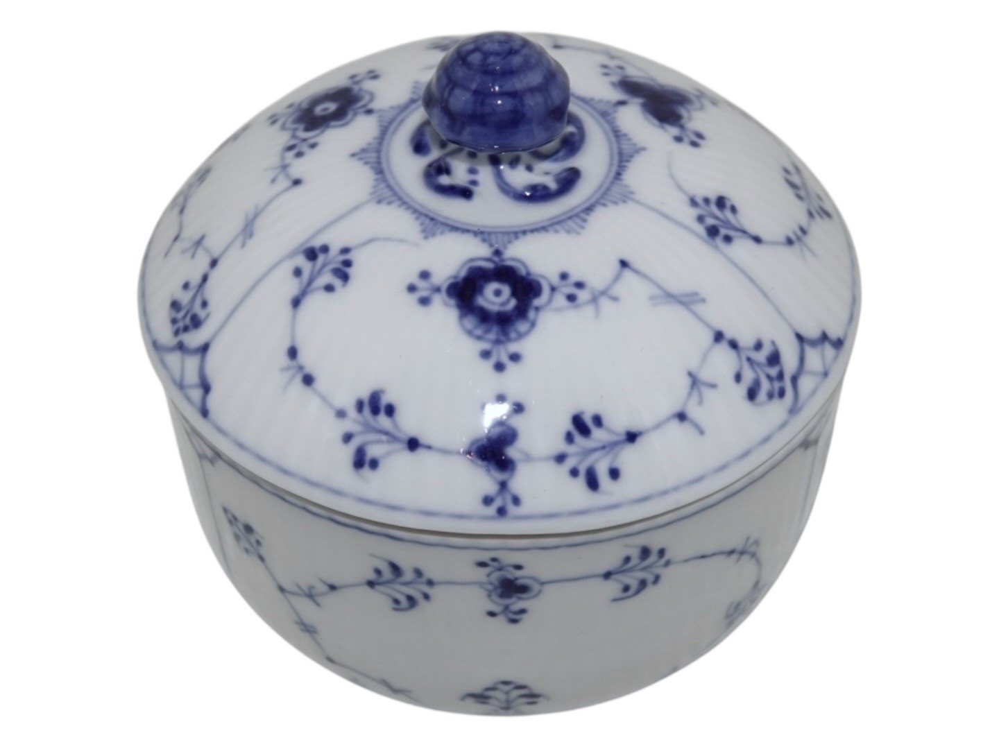 Royal Copenhagen Musselmalet Riflet, stor og sjælden sukkerdåse (sukkerskål).