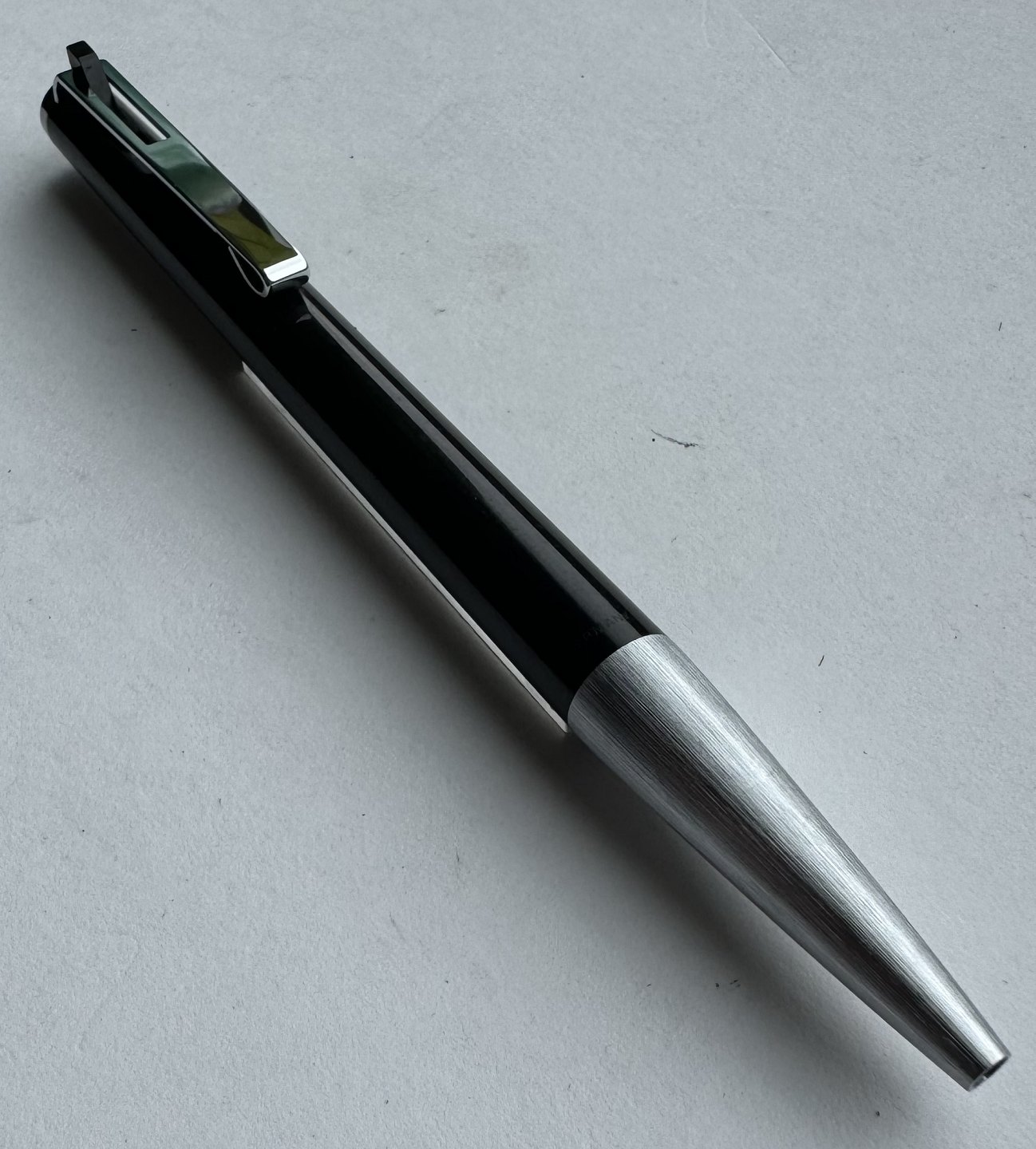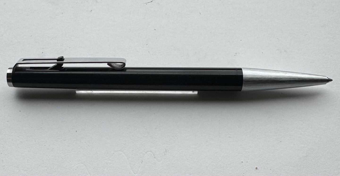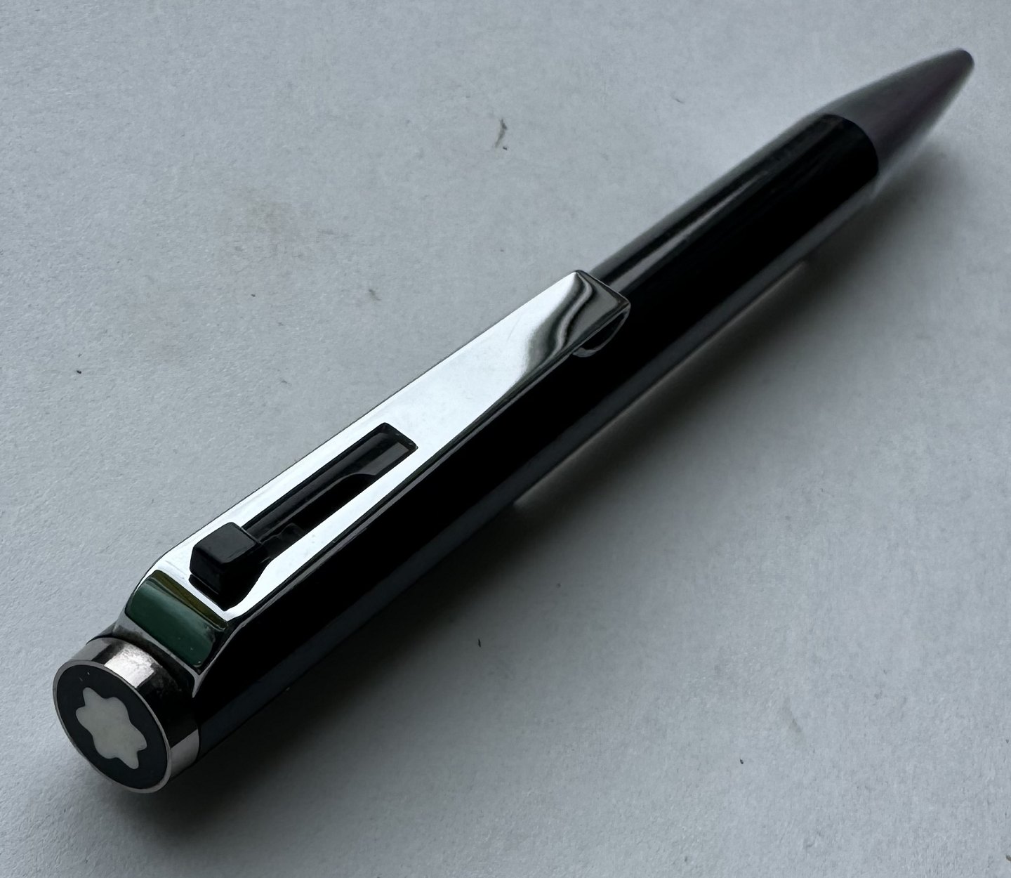 Sort Montblanc 780 kuglepen i delvis børstet stål finish. Klar til at blive brugt med original Montblanc refil, der skubbes ud for enden af pennen ved at aktivere kontakten på clip’en.
