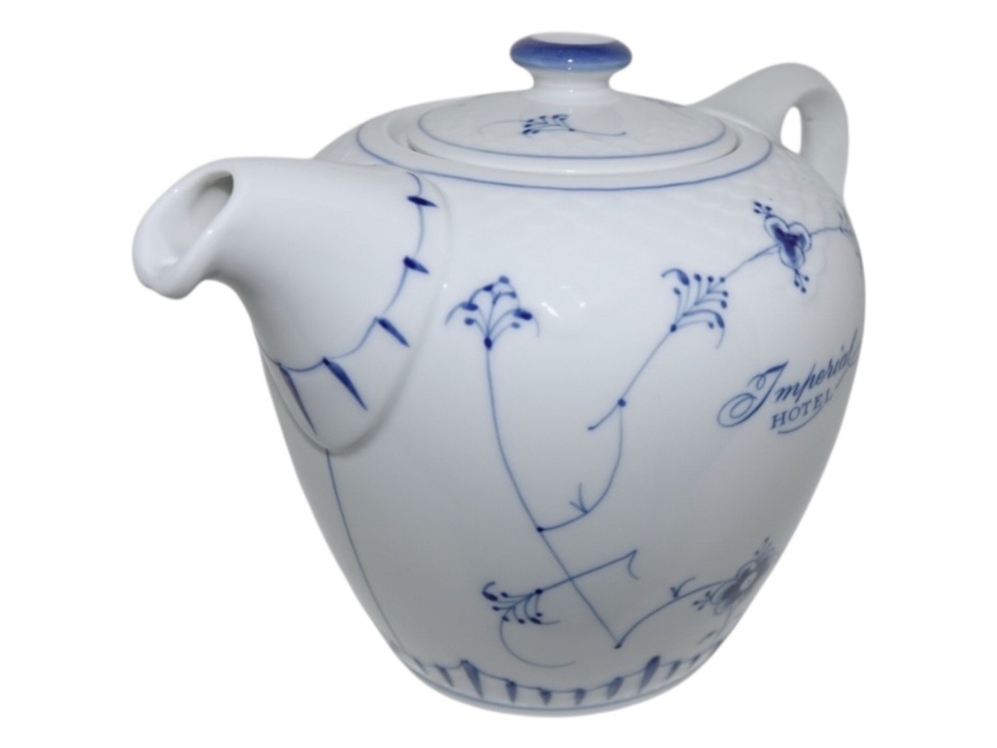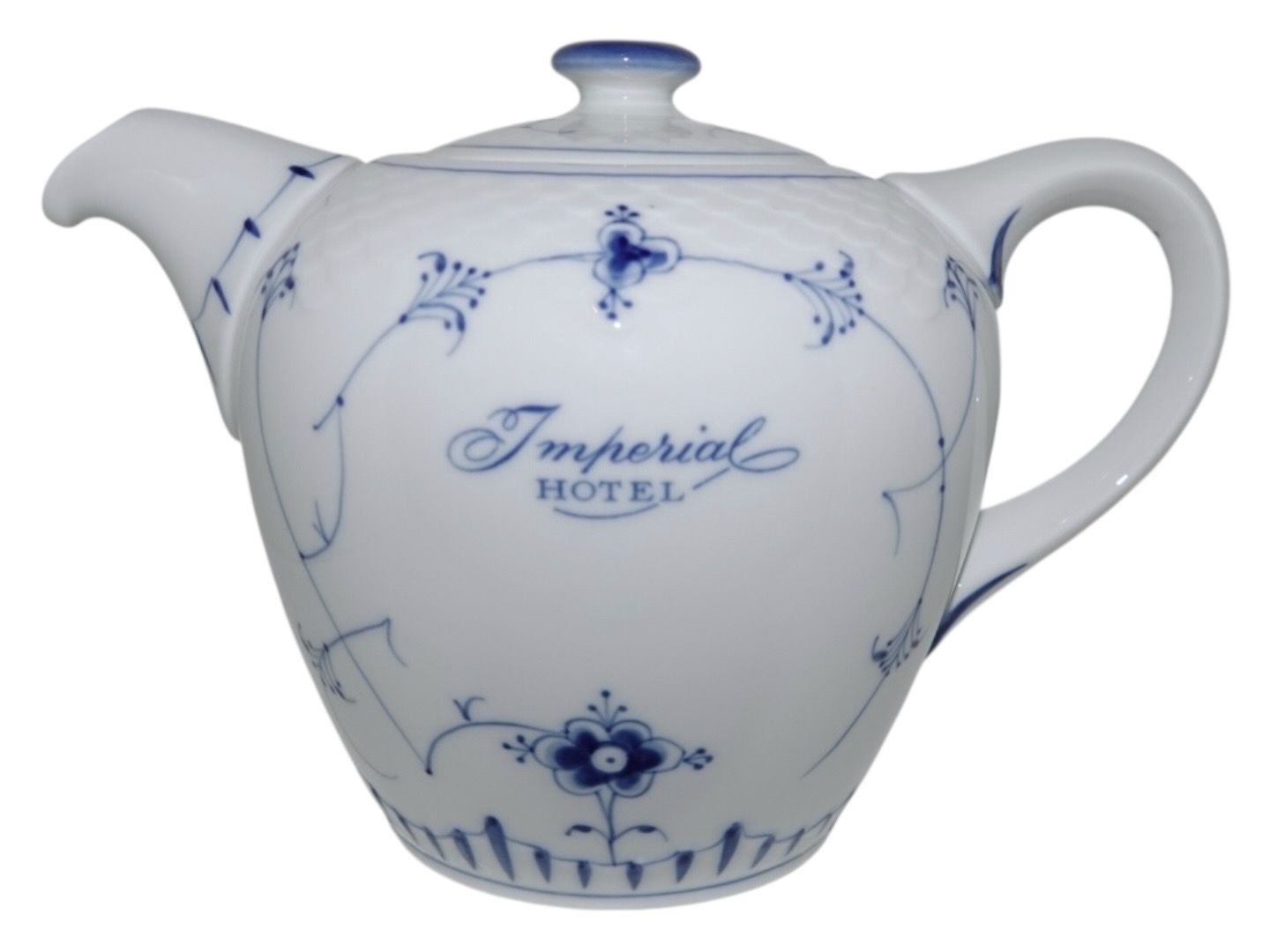 Bing & Grøndahl Blåmalet / Musselmalet tykt jernporcelæn, tekande med logo fra Imperial Hotel.