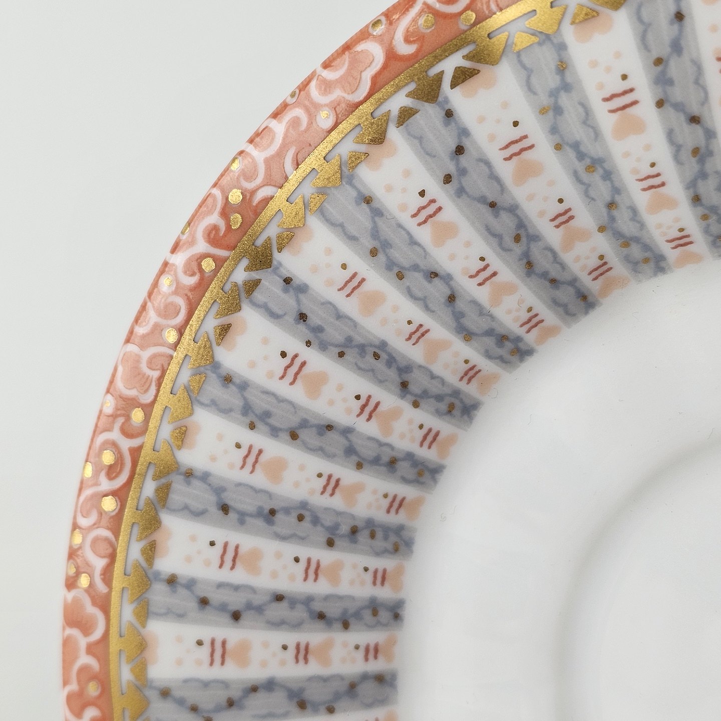 Fairytale er i hvidt porcelæn dekoreret med farverige mønstre og gyldne detaljer