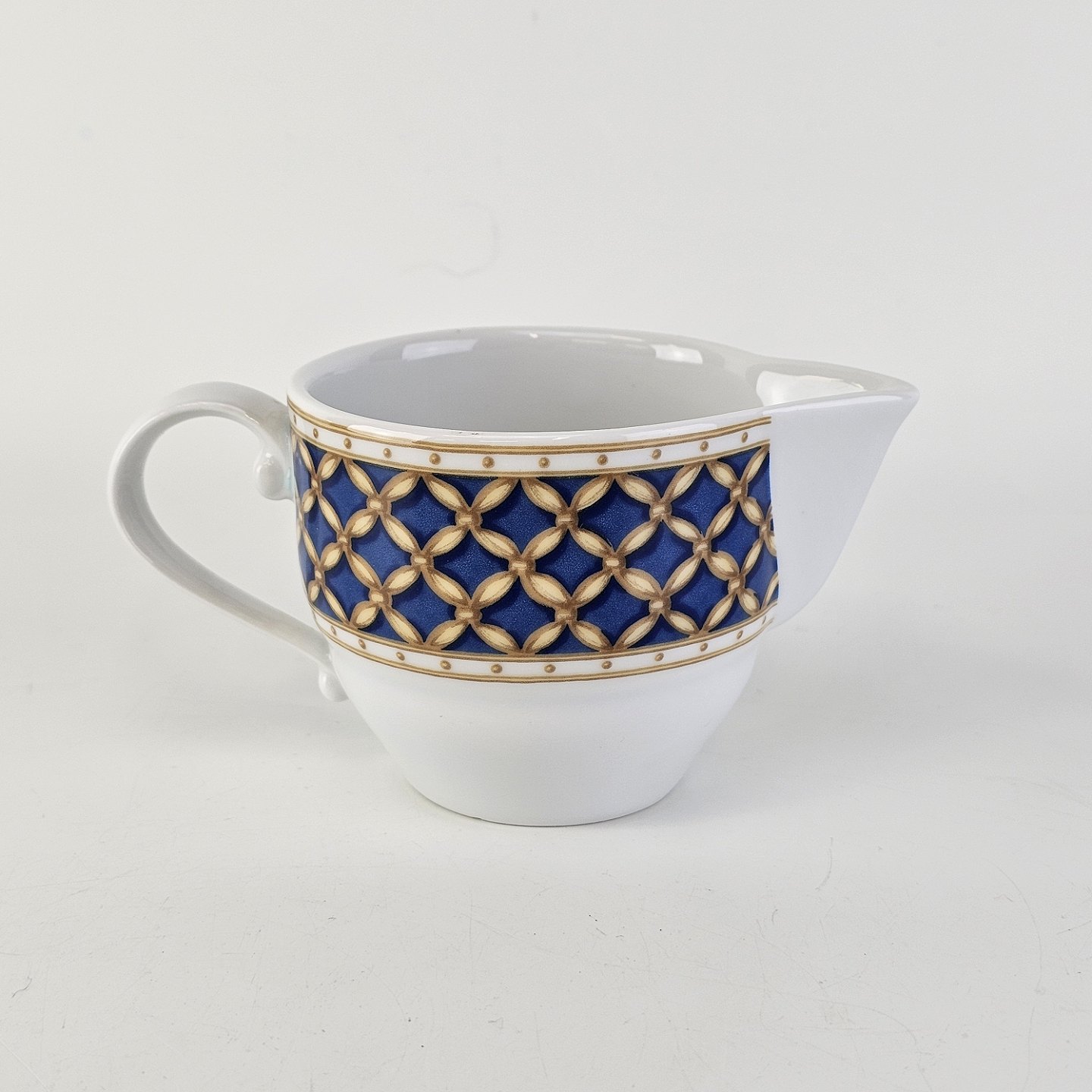 Liselund er hvidt porcelæn dekoreret i lyseblå eller mørkeblå nuancer med fletmønster