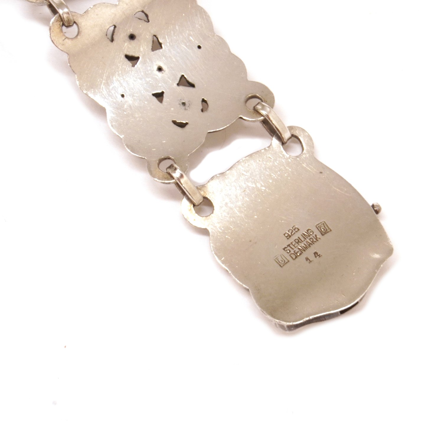 Kraftigt leddelt Georg Jensen armlænke #14 fra perioden 1933-44 med kasse- og sikkerhedslås. God Stand. L: 19,5cm