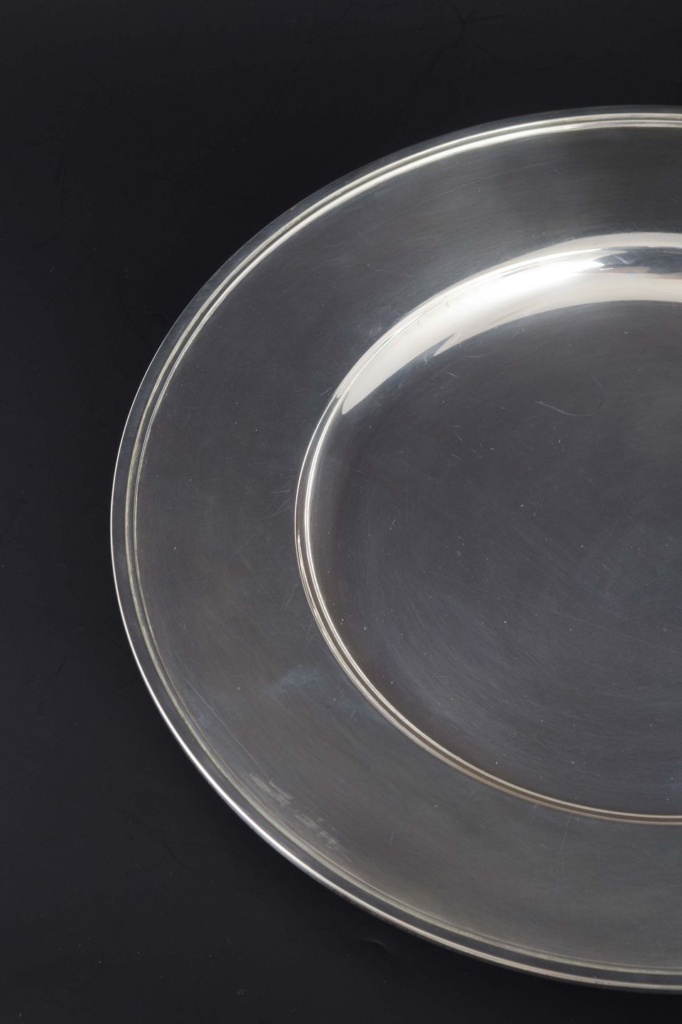Klassisk rund dækketallerken i enkel formgivning med let forhøjet kant, stemplet med tretårnet 830S.