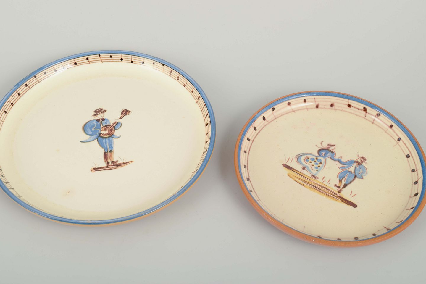 Dansk keramik fra midten af 1900-tallet er ofte præget af en legende og folkloristisk dekorationsstil, hvor motiver fra hverdagsliv og traditioner blev gengivet i en enkel, næsten naivistisk formsprog. Disse fade repræsenterer en kombination af funktionelt brugskeramik og dekorativ kunsthåndværk, som i dag er eftertragtet af samlere for deres tidstypiske udtryk og kulturhistoriske værdi.