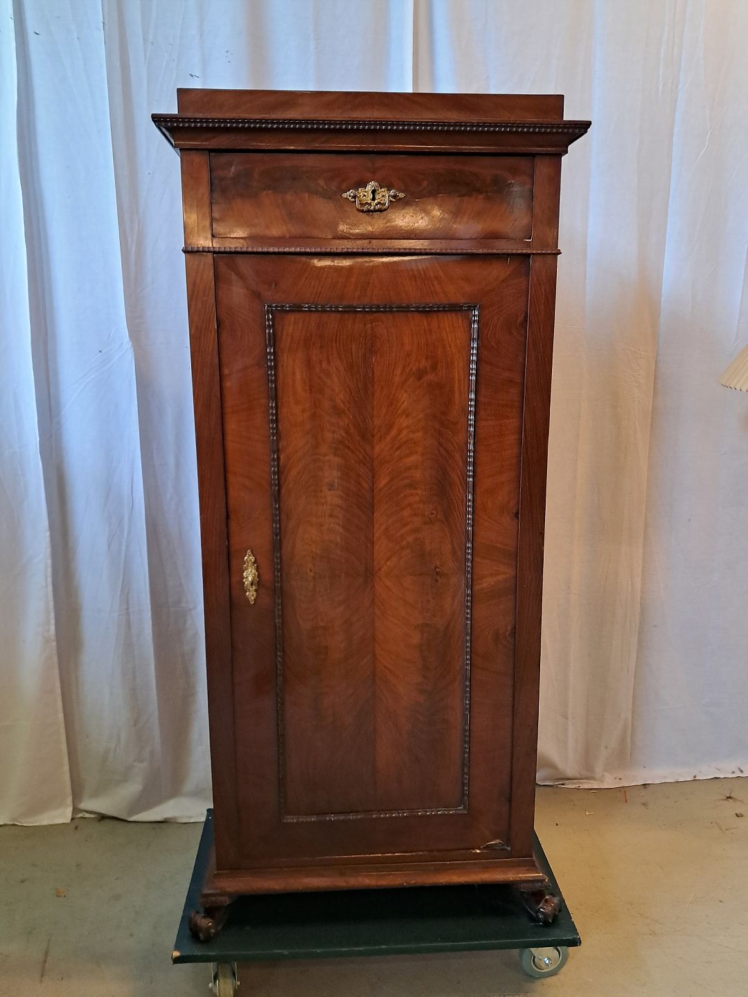 Skab i fineret nødetræ og mahogni, fra 1900erne.