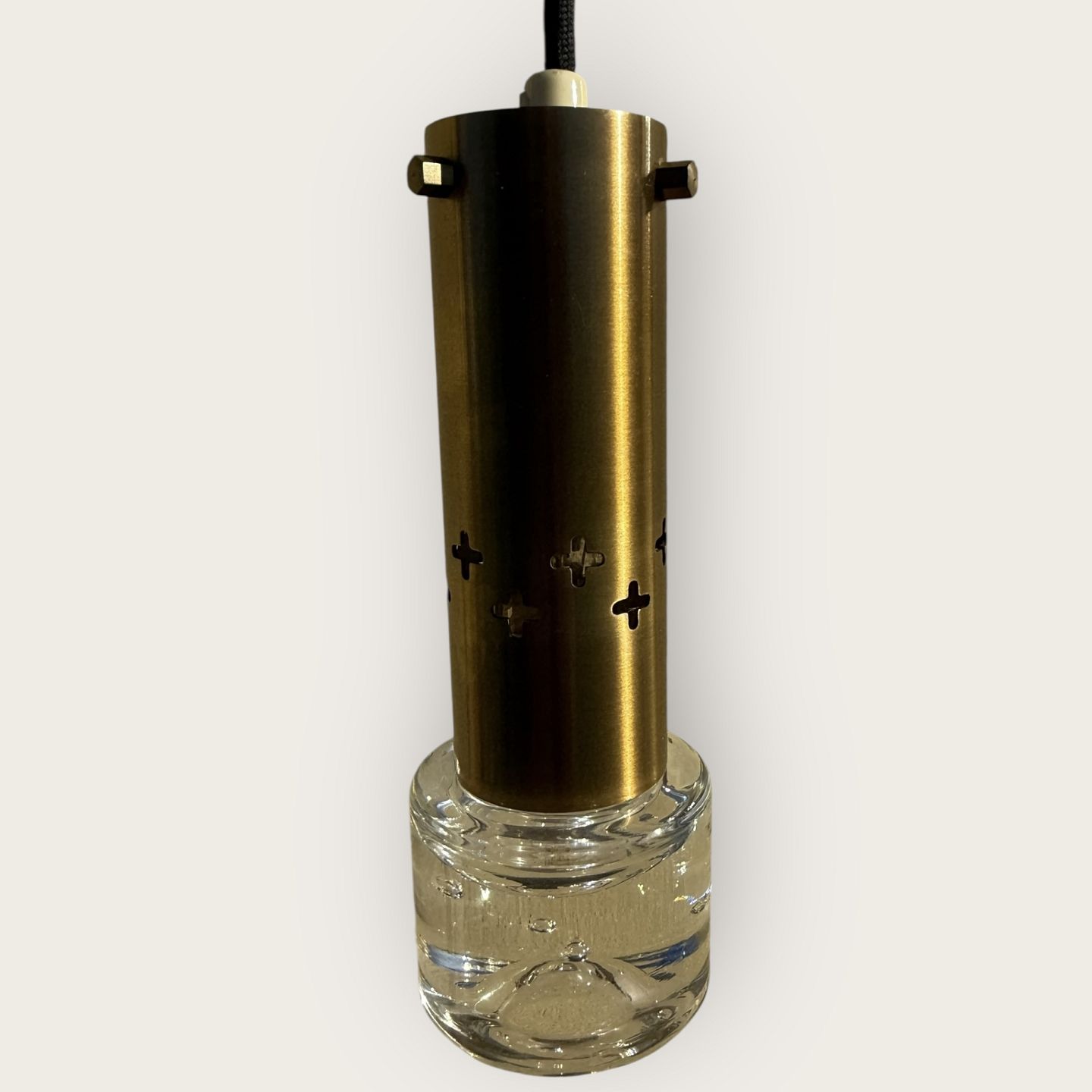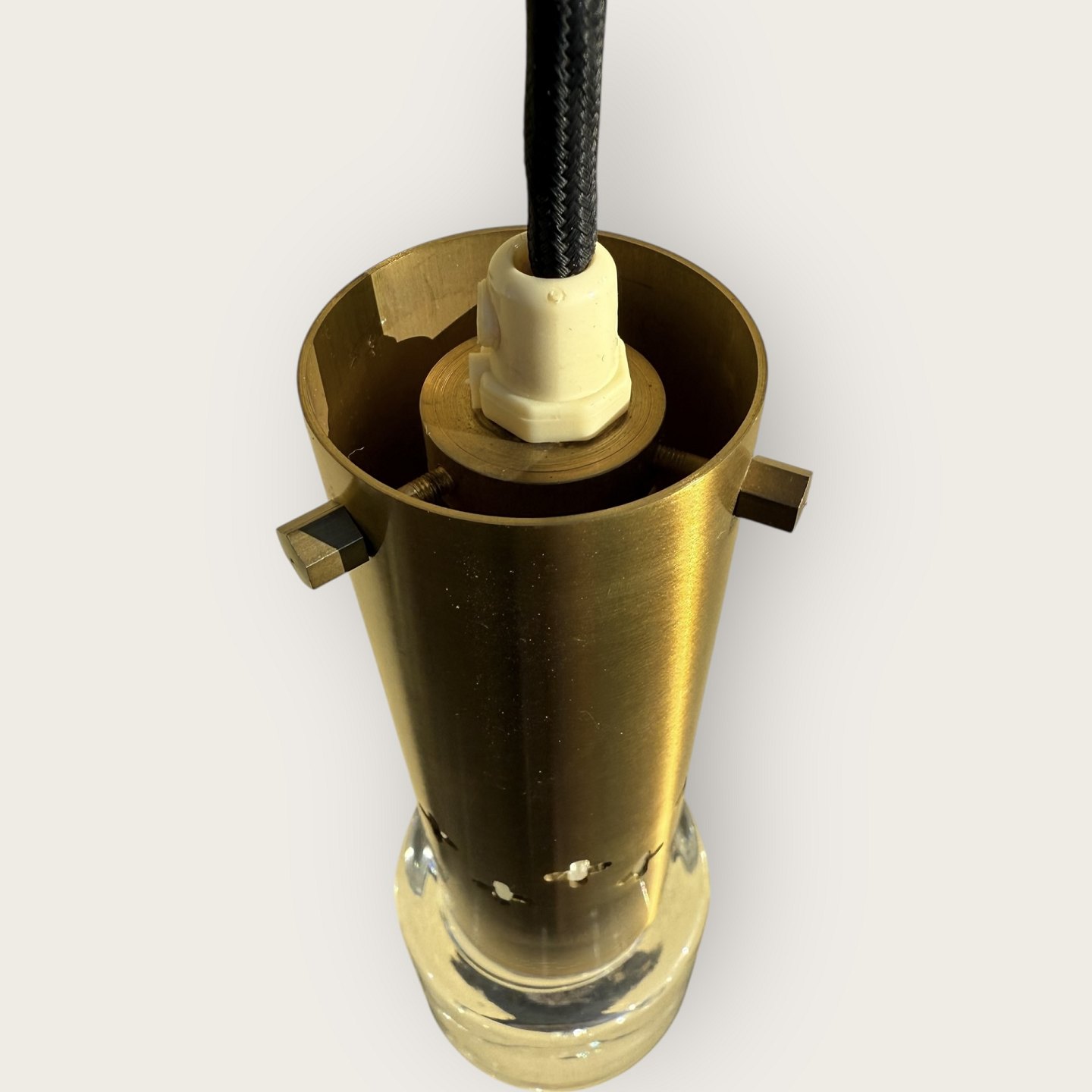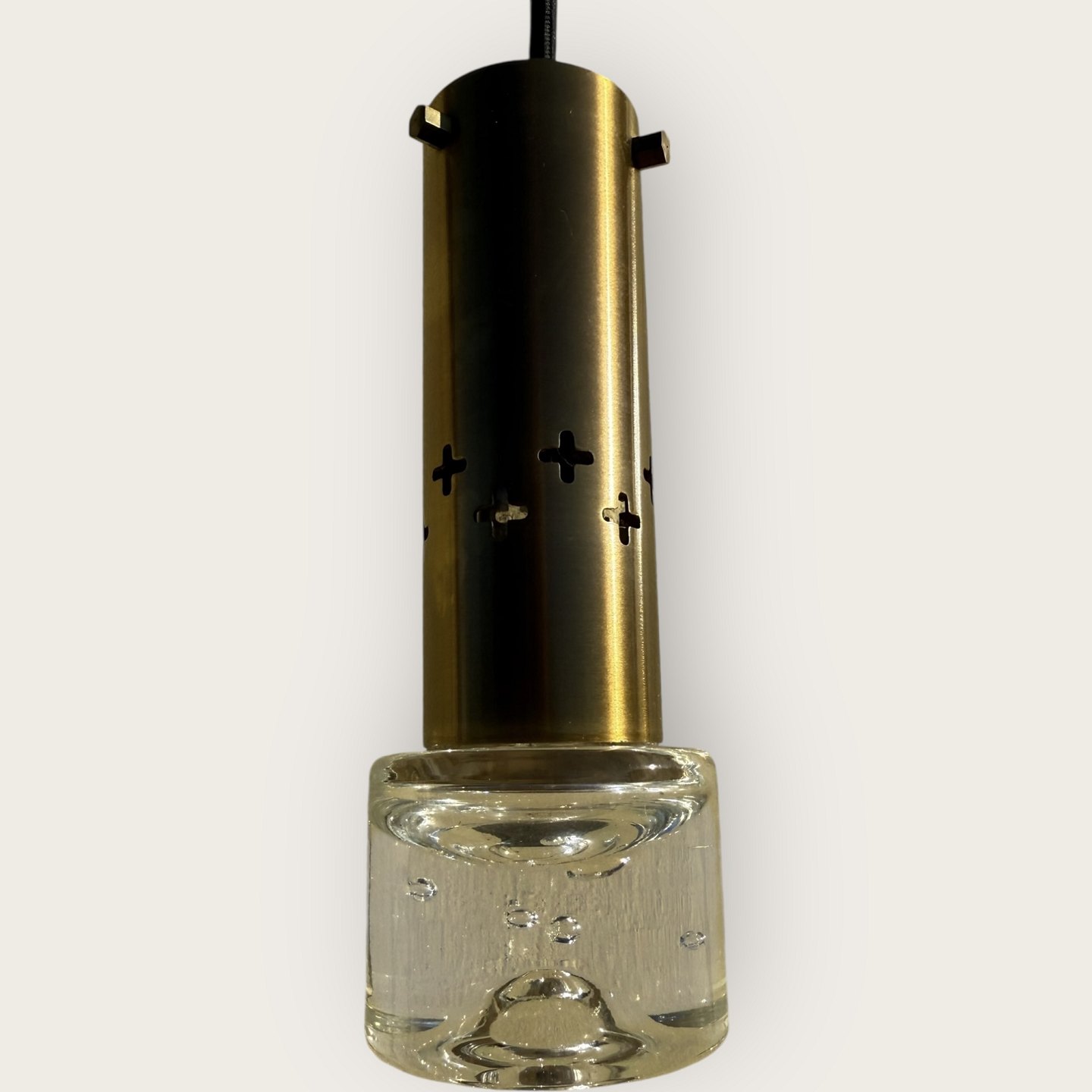 Frithængende lamper i messing og glas, Sverige i 1970'erne, Højde 17,5cm, diameter 6cm, fin stand