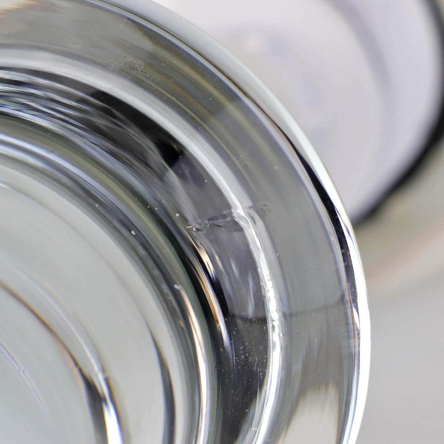 Fremstår med lettere ridser under bunden samt ved fatningen. Den har en mindre ujævnhed i glasset, som kan anes, når lampen vendes på hovedet.