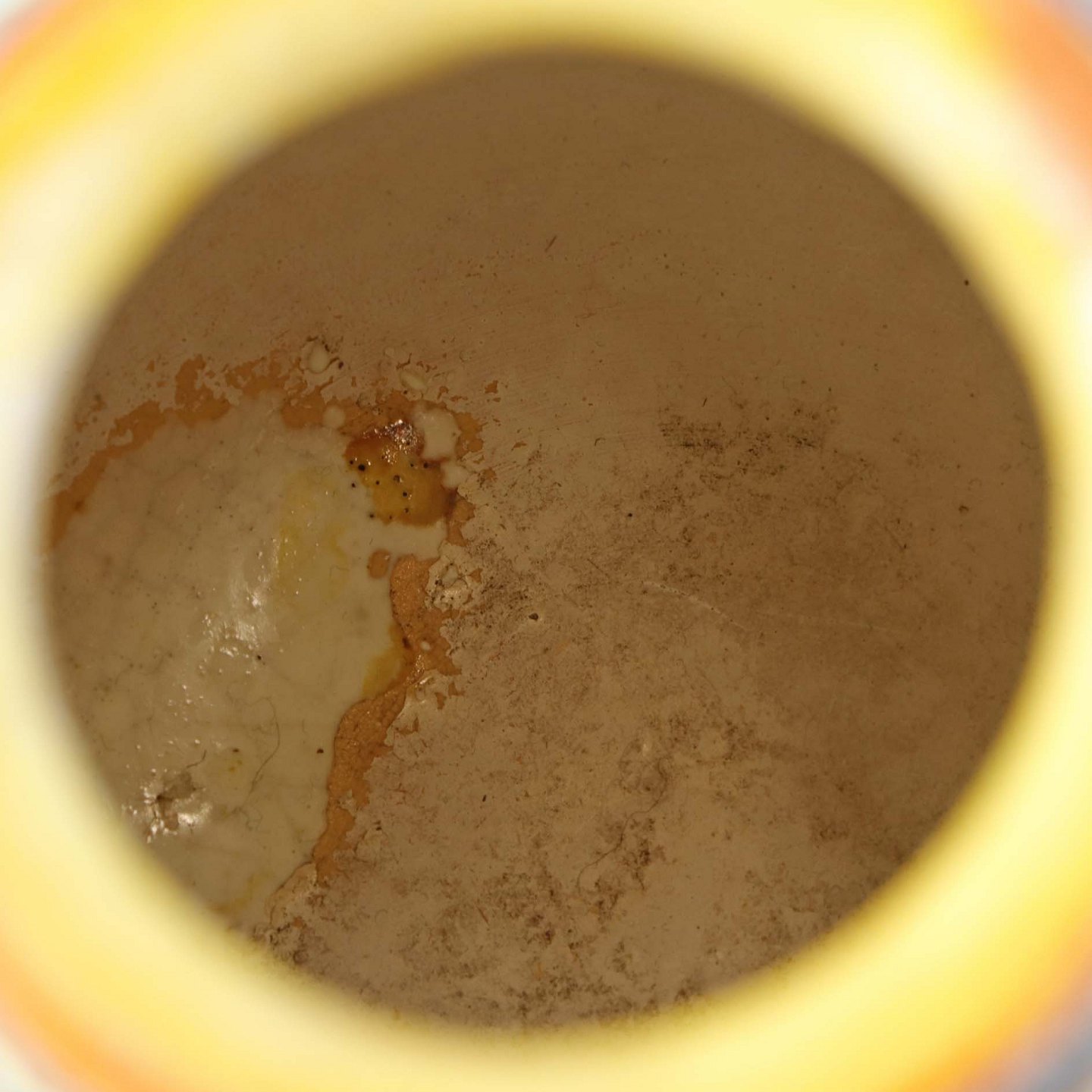 Fremstår med indvendige brugsspor samt ujævnhed i glaseringen på et mindre område ved bundkanten.