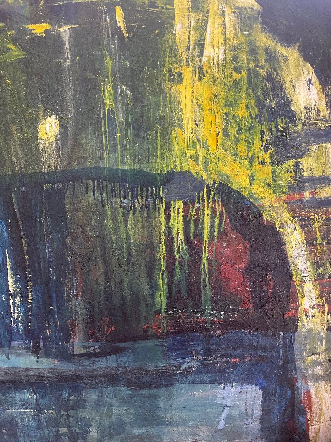 "Psyko dramatisk landskab" Olie maleri i kraftig sølv svæveramme.