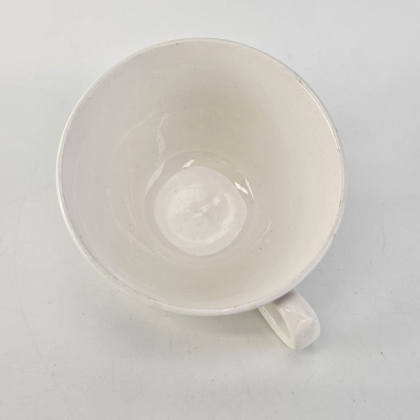 Stellet er i hvid fajance og håndmalet med dekoration af blå violer