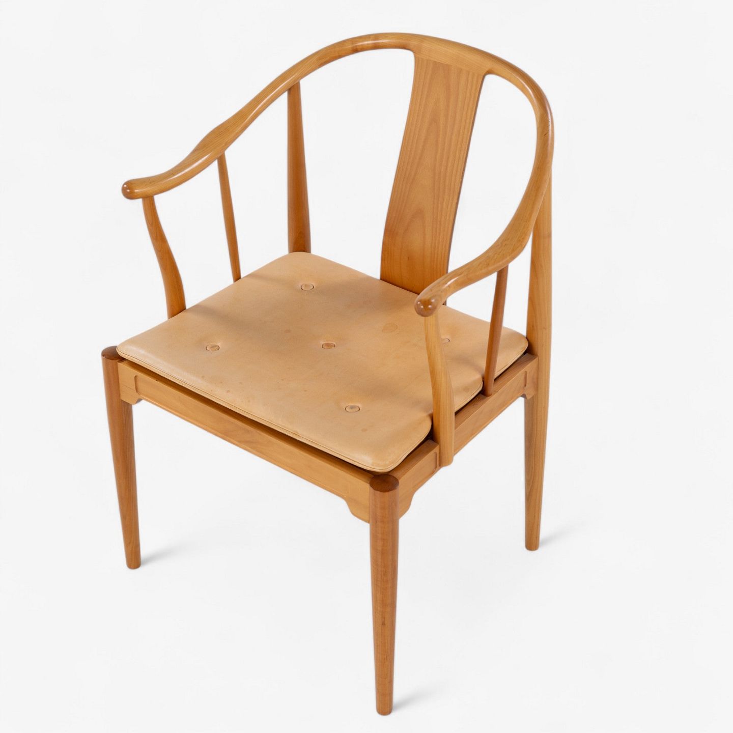 FH 4283 - Kinastol i kirsebær med hynde i patineret naturlæder. Mærket fra producent.