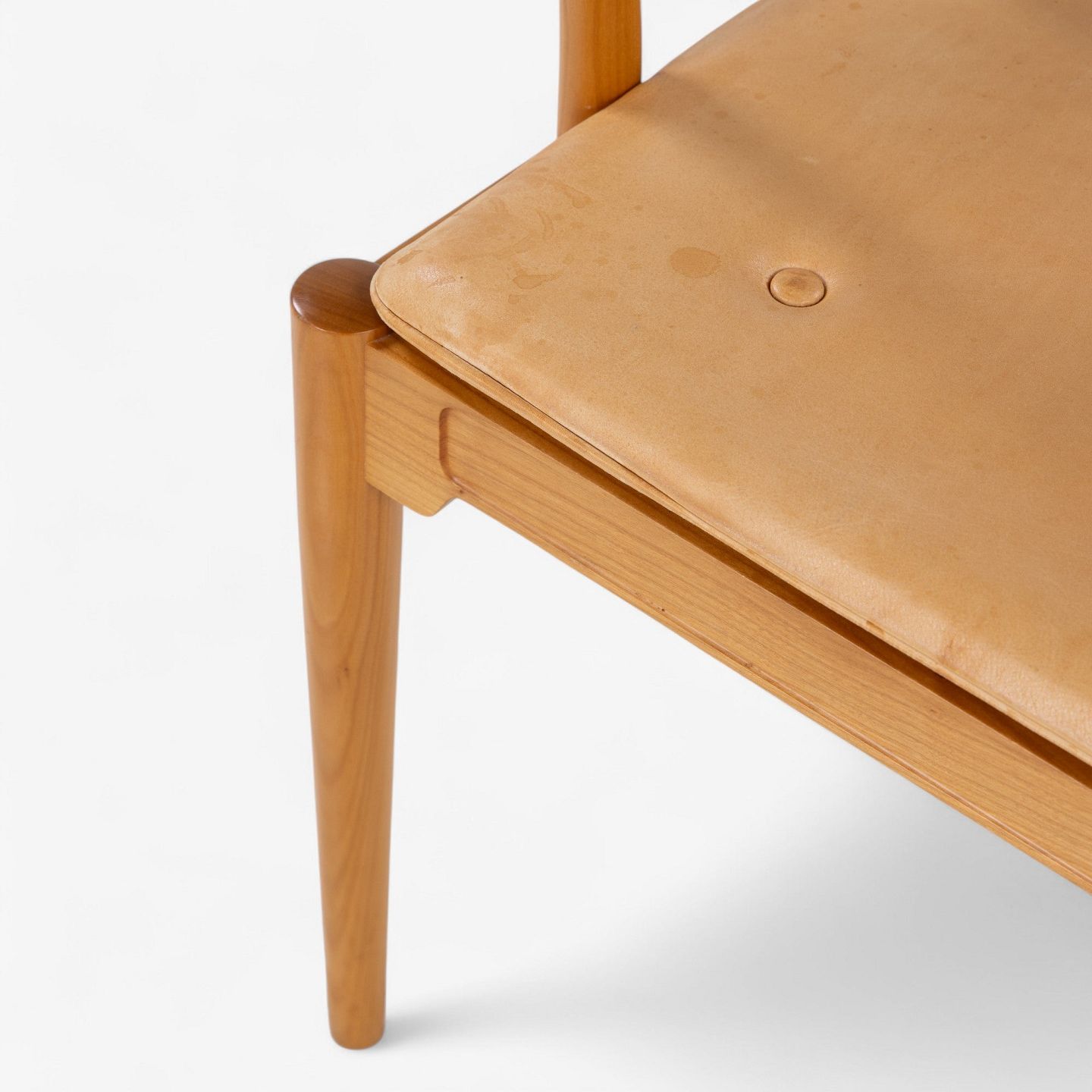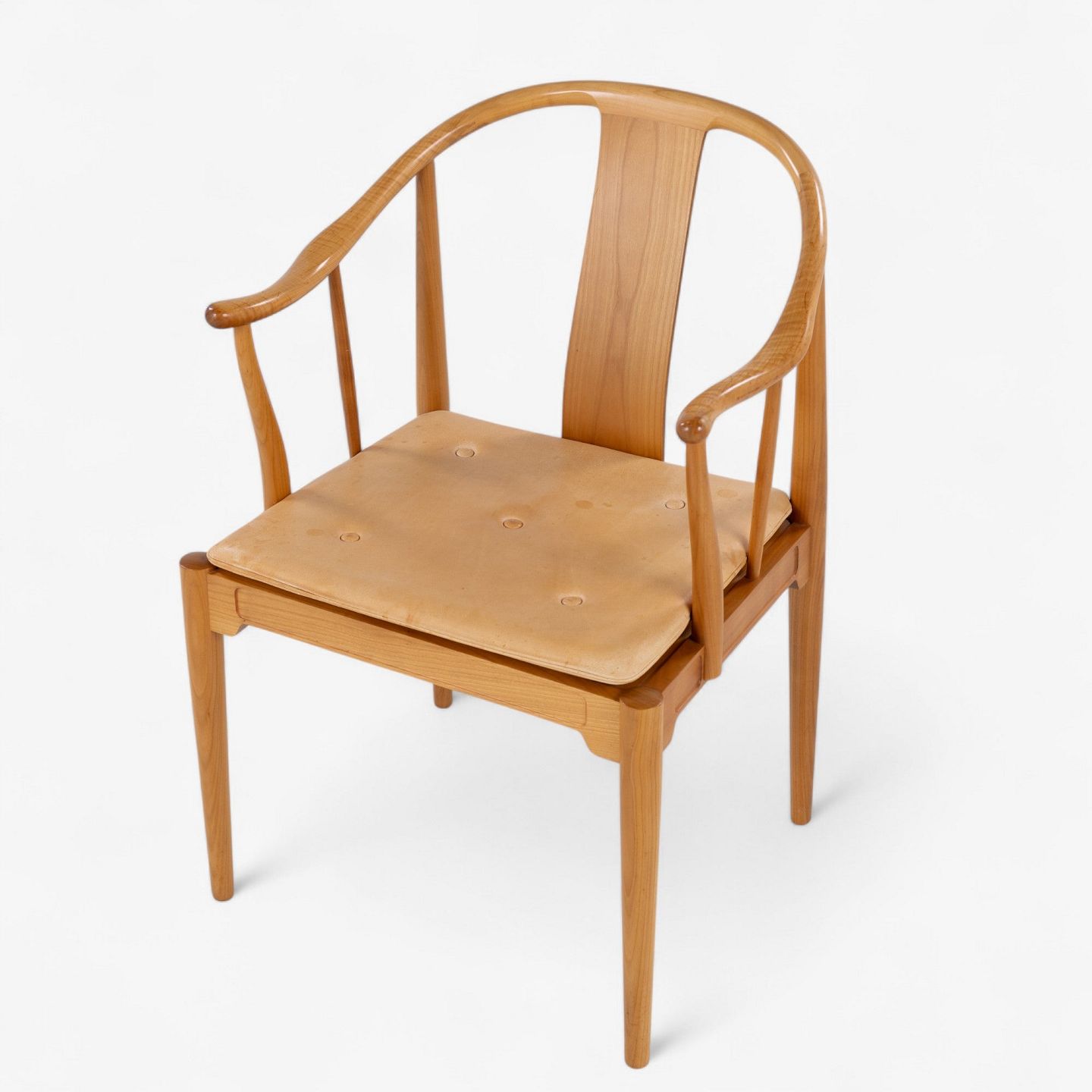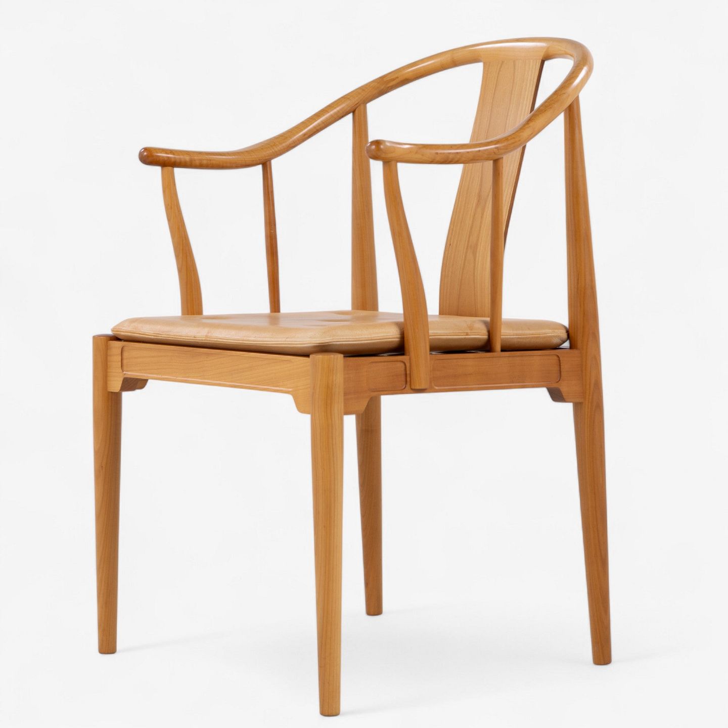 FH 4283 - Kinastol i kirsebær med hynde i patineret naturlæder. Mærket fra producent.