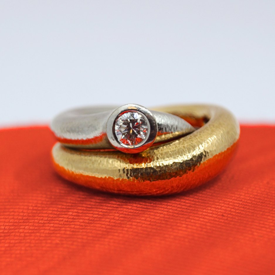 Ole Lynggaard; "Fidelity" ring i 14 kt. guld og hvidguld, prydet med brillantsleben diamant, 0.30 ct. W VS.
