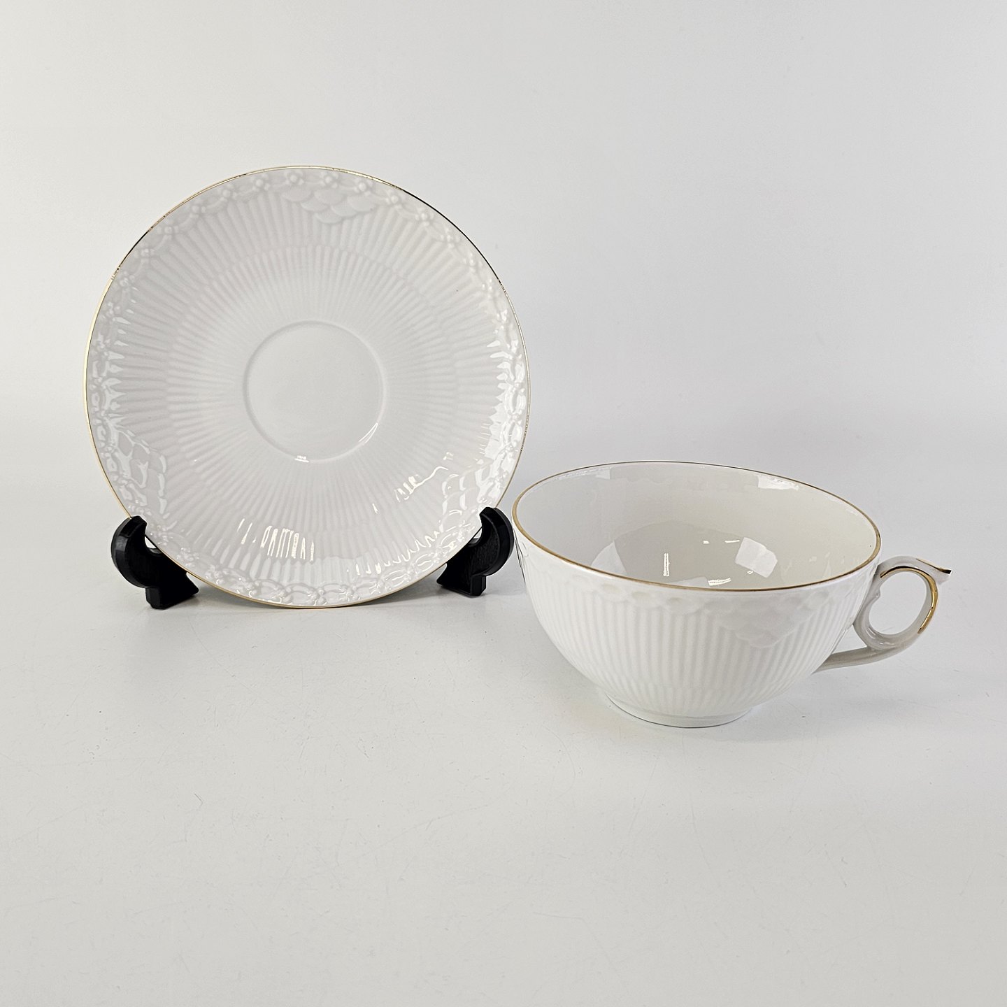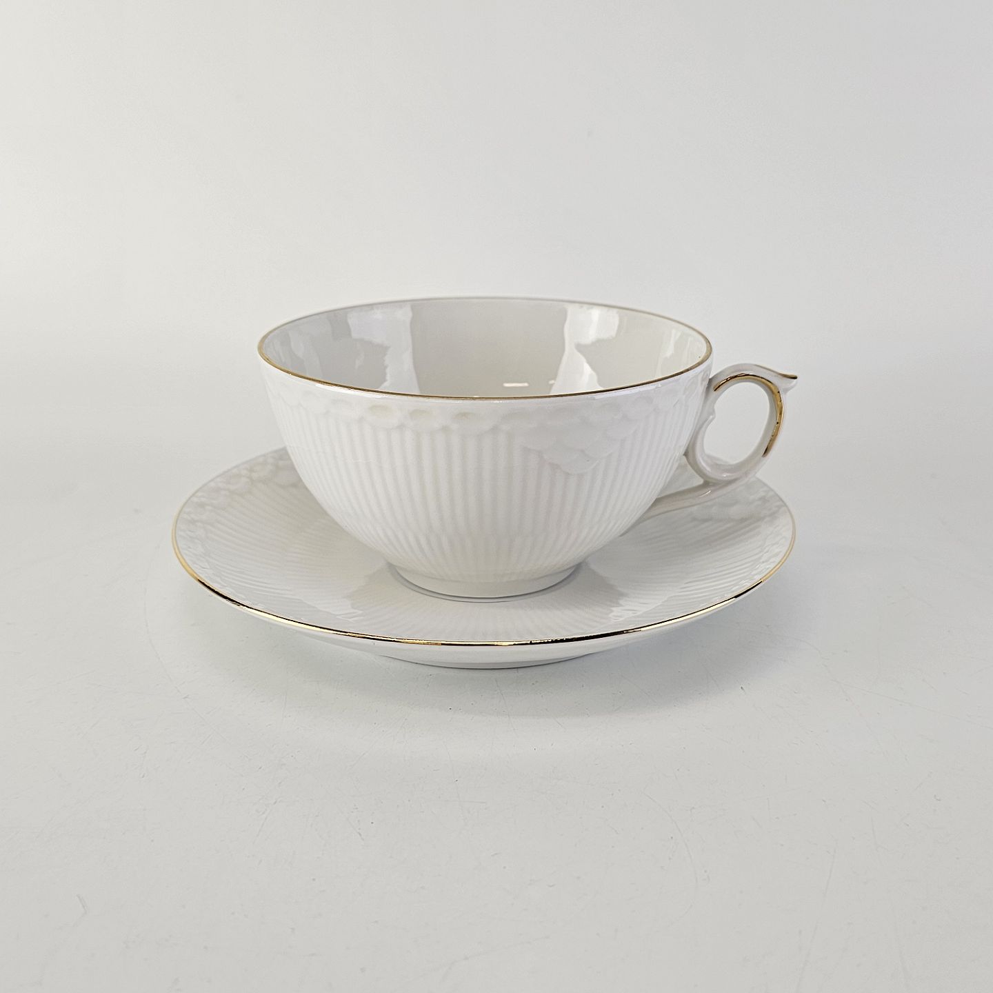 Kop med underkop i porcelæn fra stellet Hvid Halvblonde
