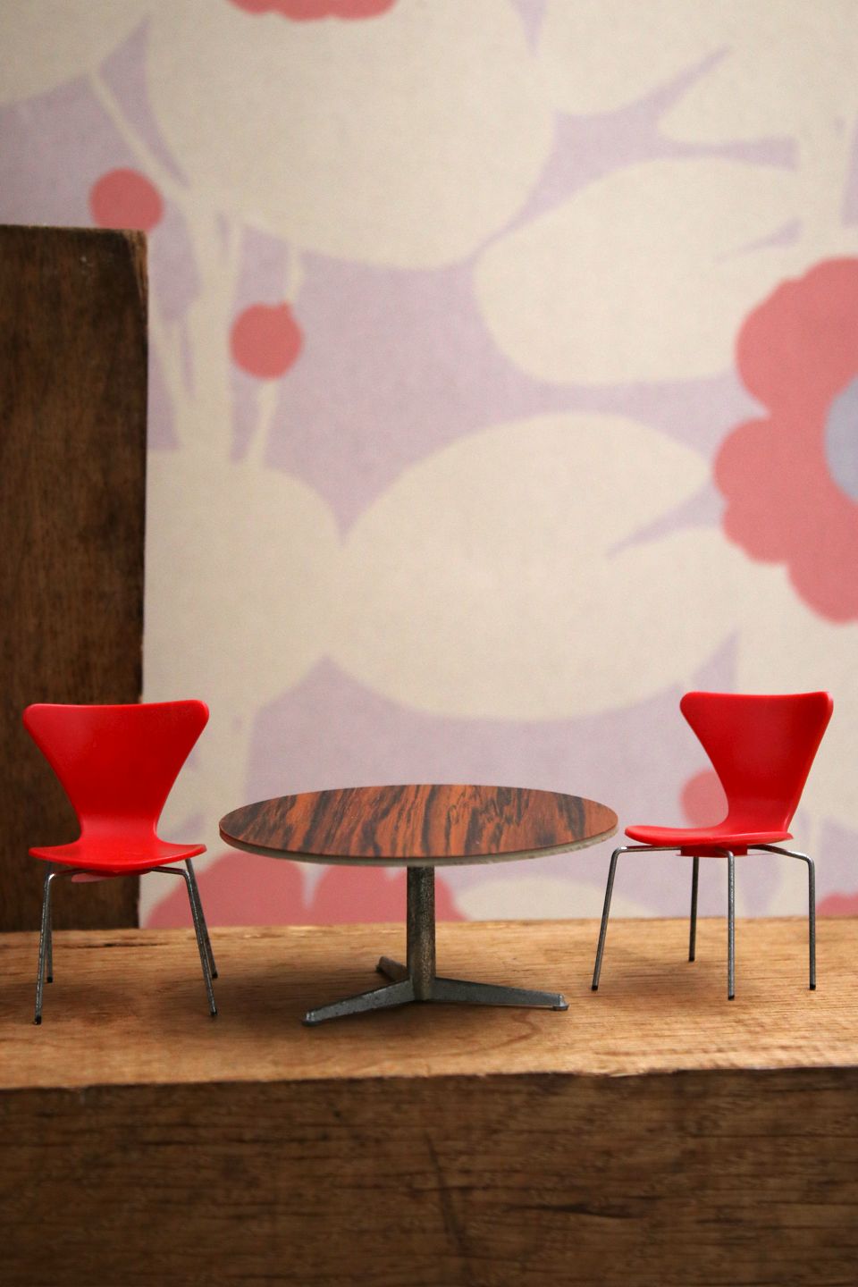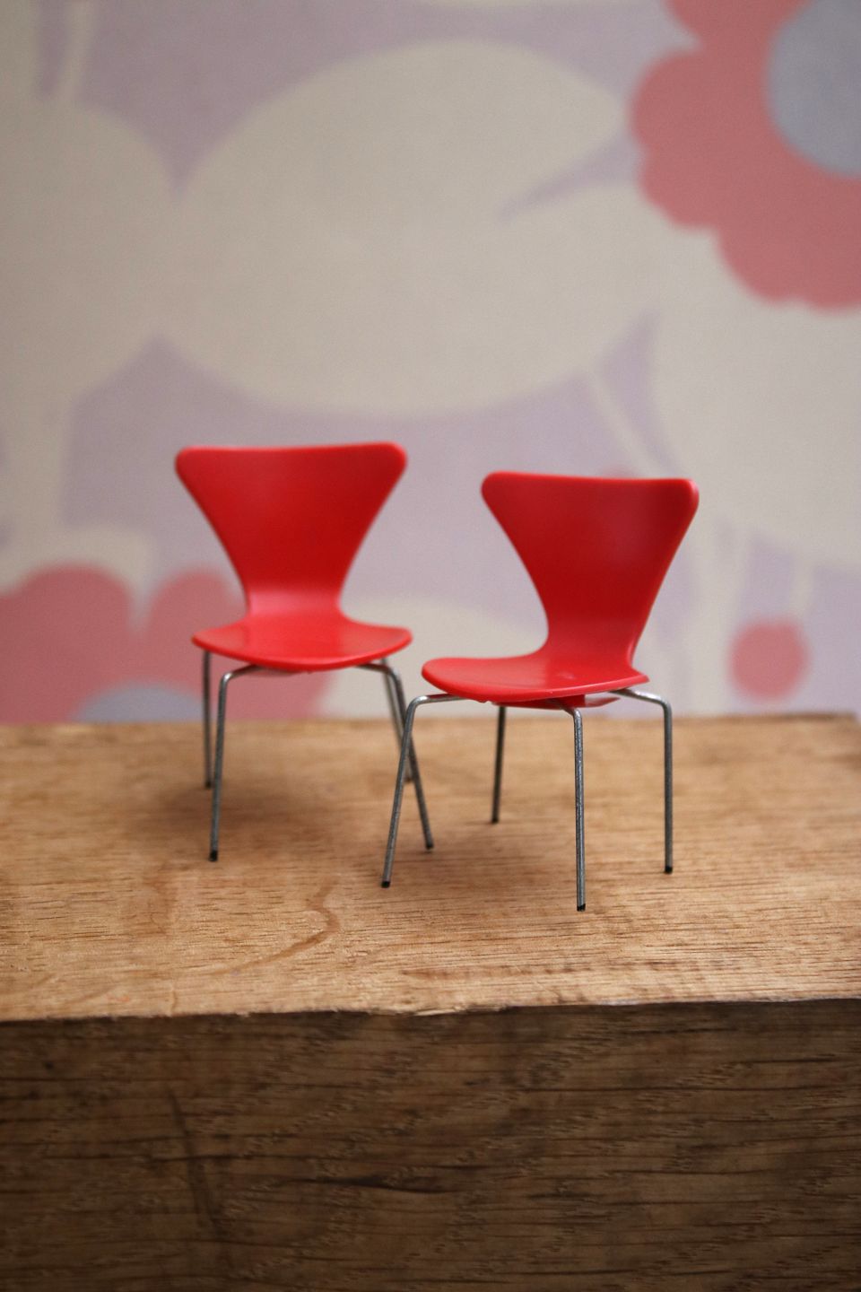 Syver stole i rød plast, H: 5,6cm. - PRIS: 250 kr. pr. stk. (2 stk.)
