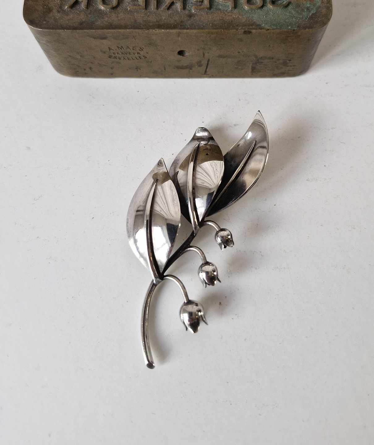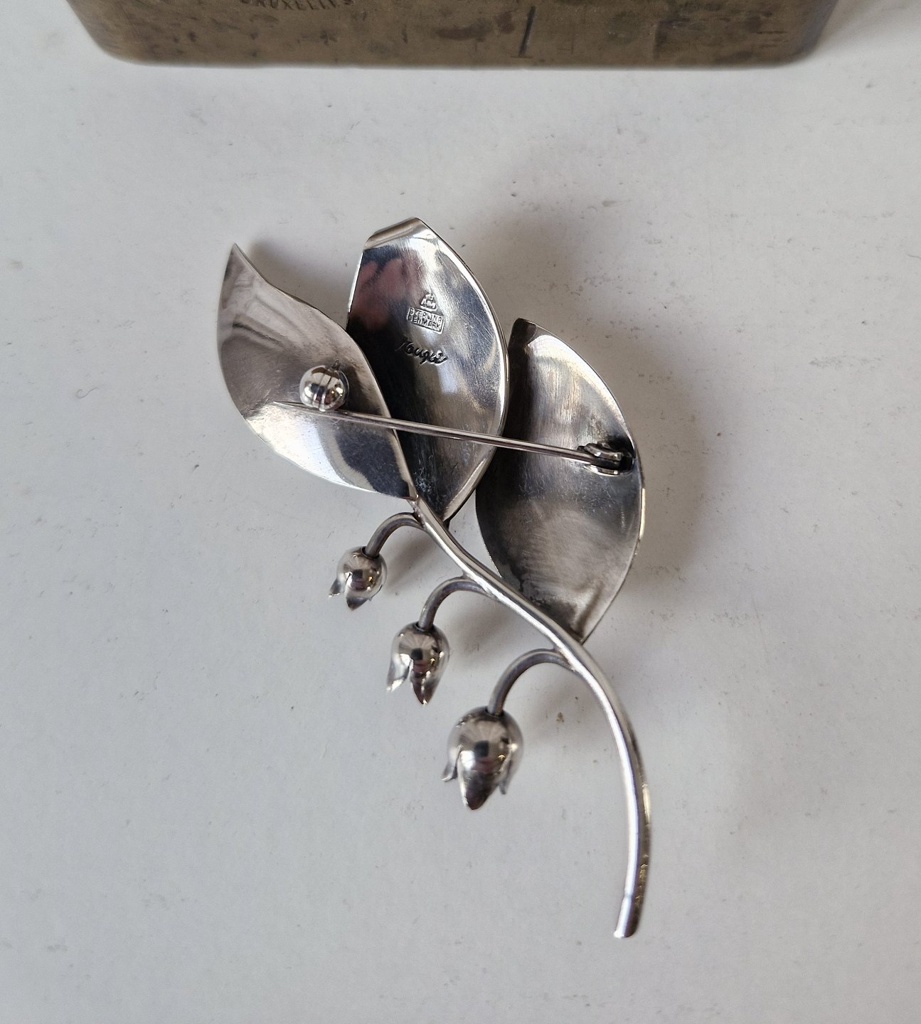 A. Michelsen sølvbroche i form af liljekonval, de tre små blomster er bevægelige.