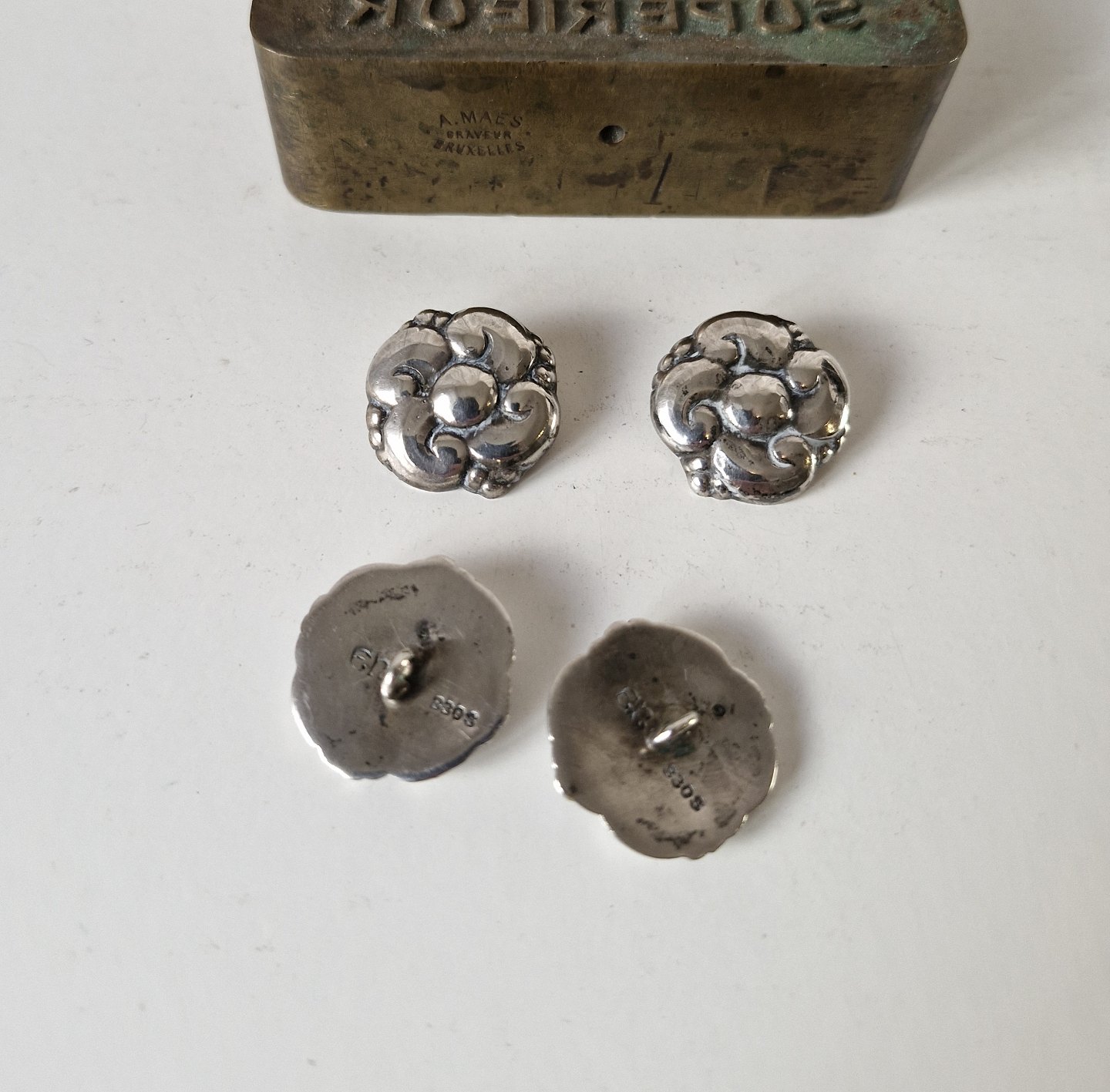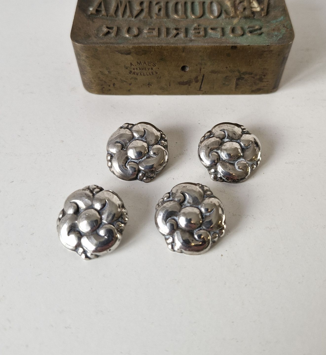 Evald Nielsen sæt på fire sølvknapper i skønvirkestil