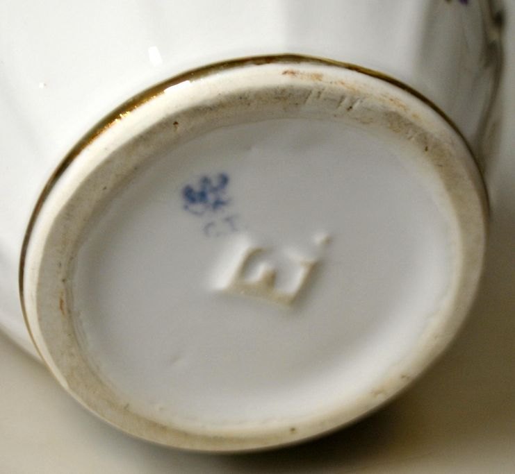 Porcelæns løve chokoladekande, C. T. Altwasser, 19. årh. Tyskland. Hvidt porcelæn. Dekoration i form af blomster i overføringsteknik. Stemplet. Med forgyldninger. Uden låg. H: 24 cm.