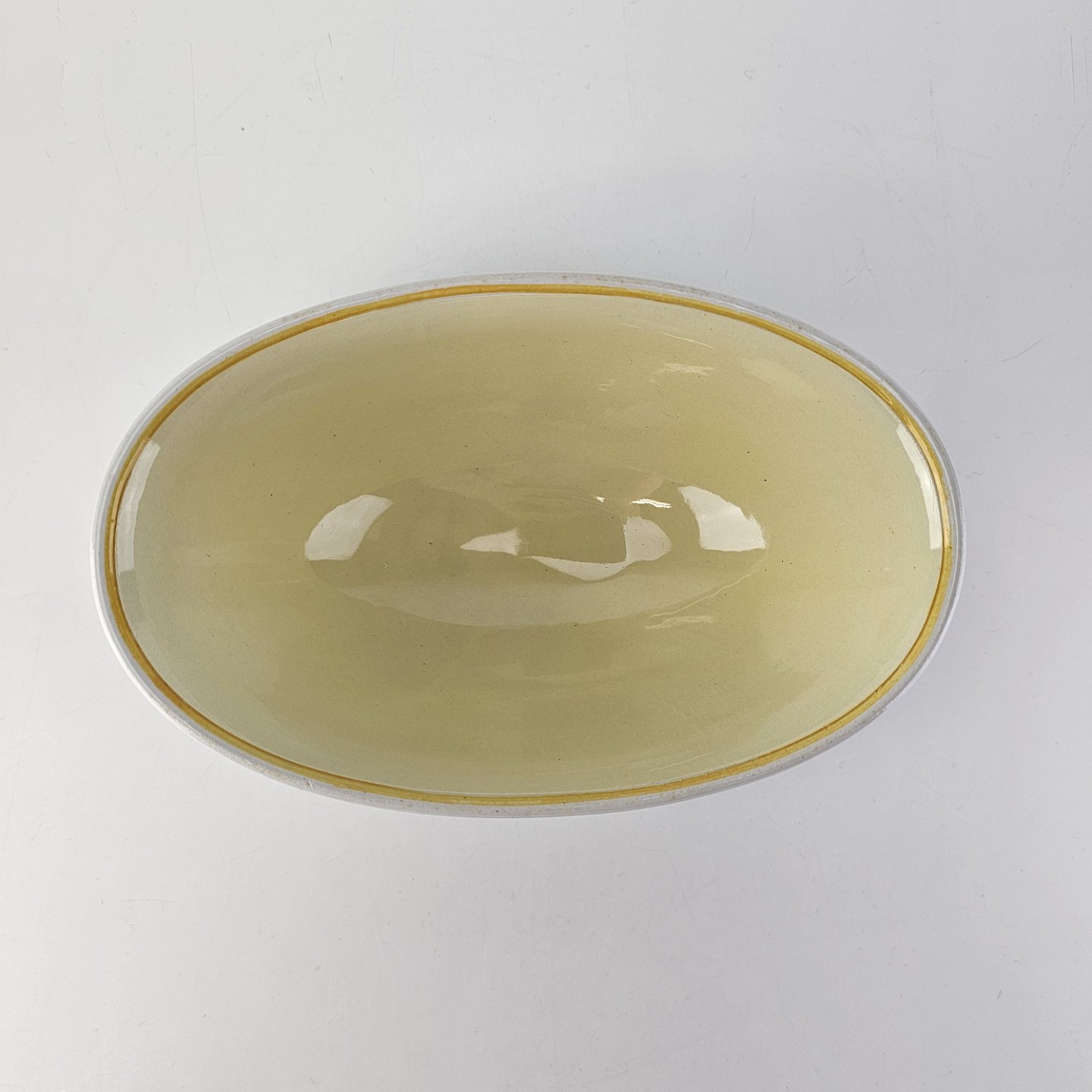 Stel i glat gul fajance med dekoration af farverige og forskelligartede blomster