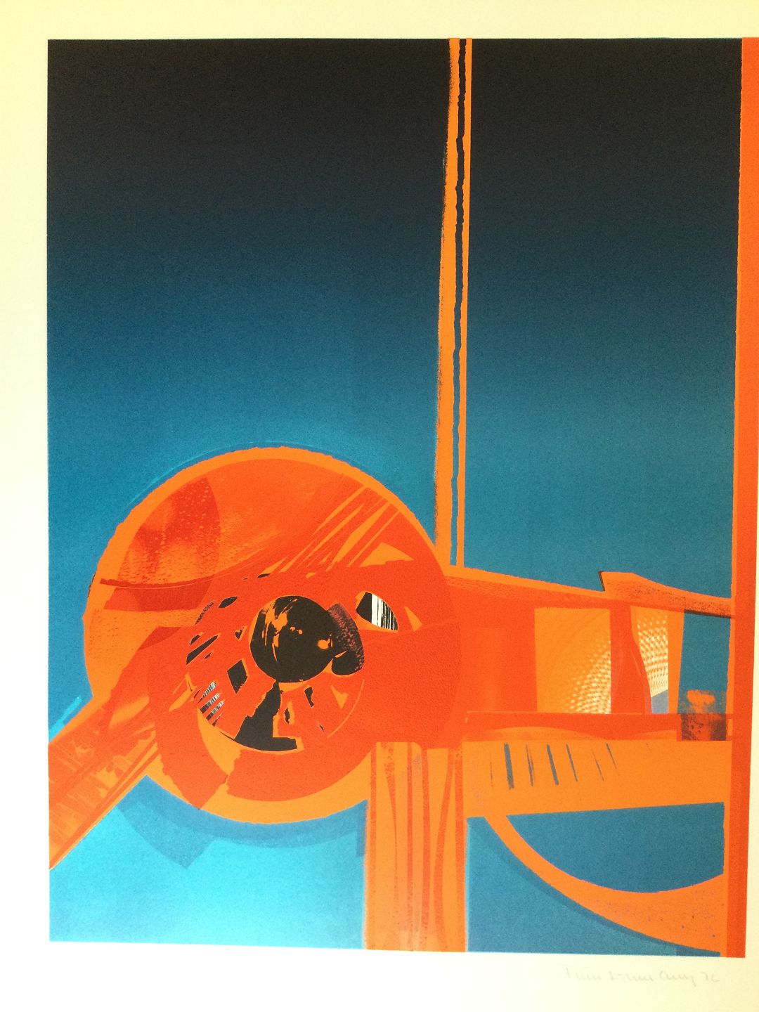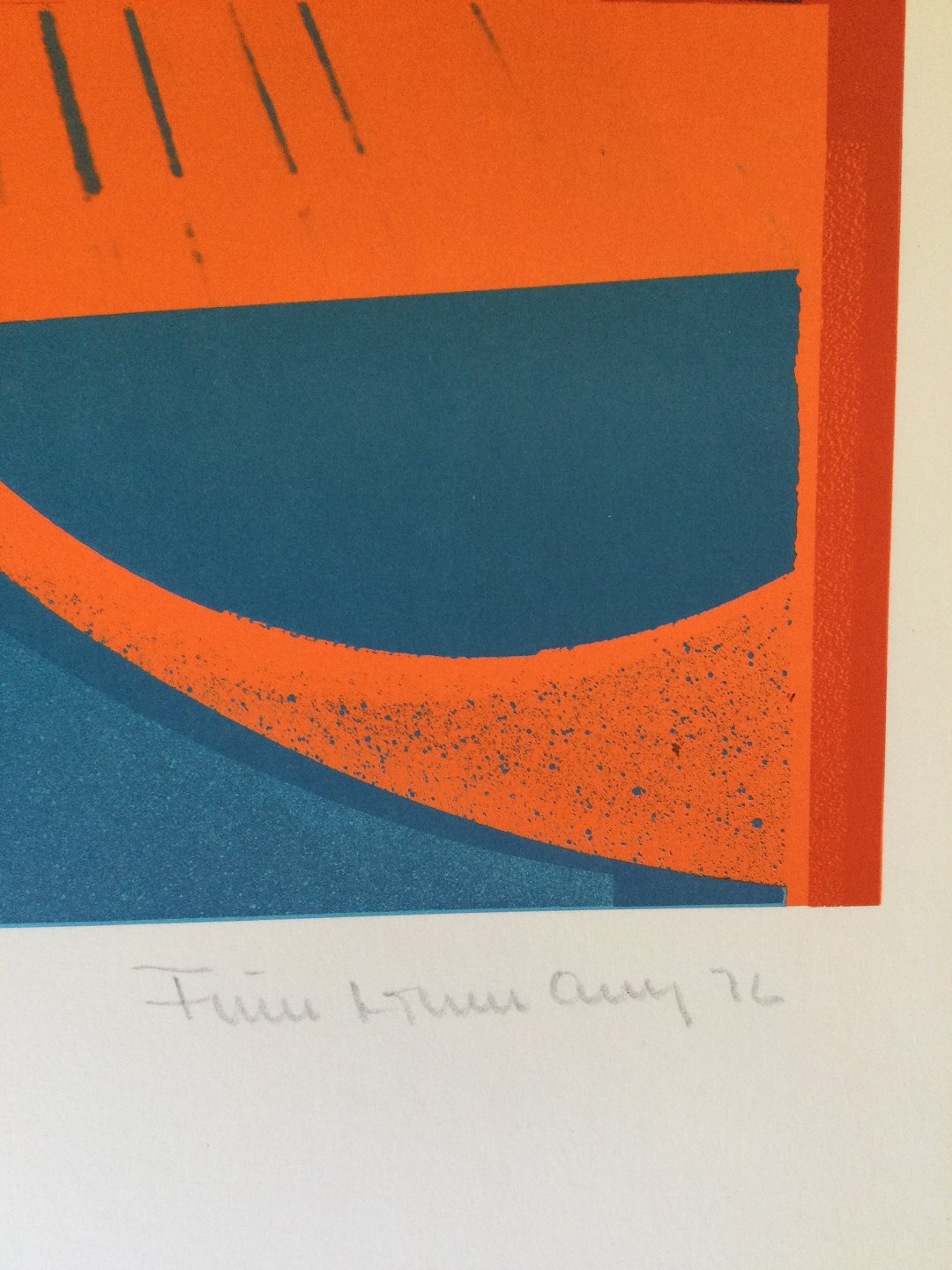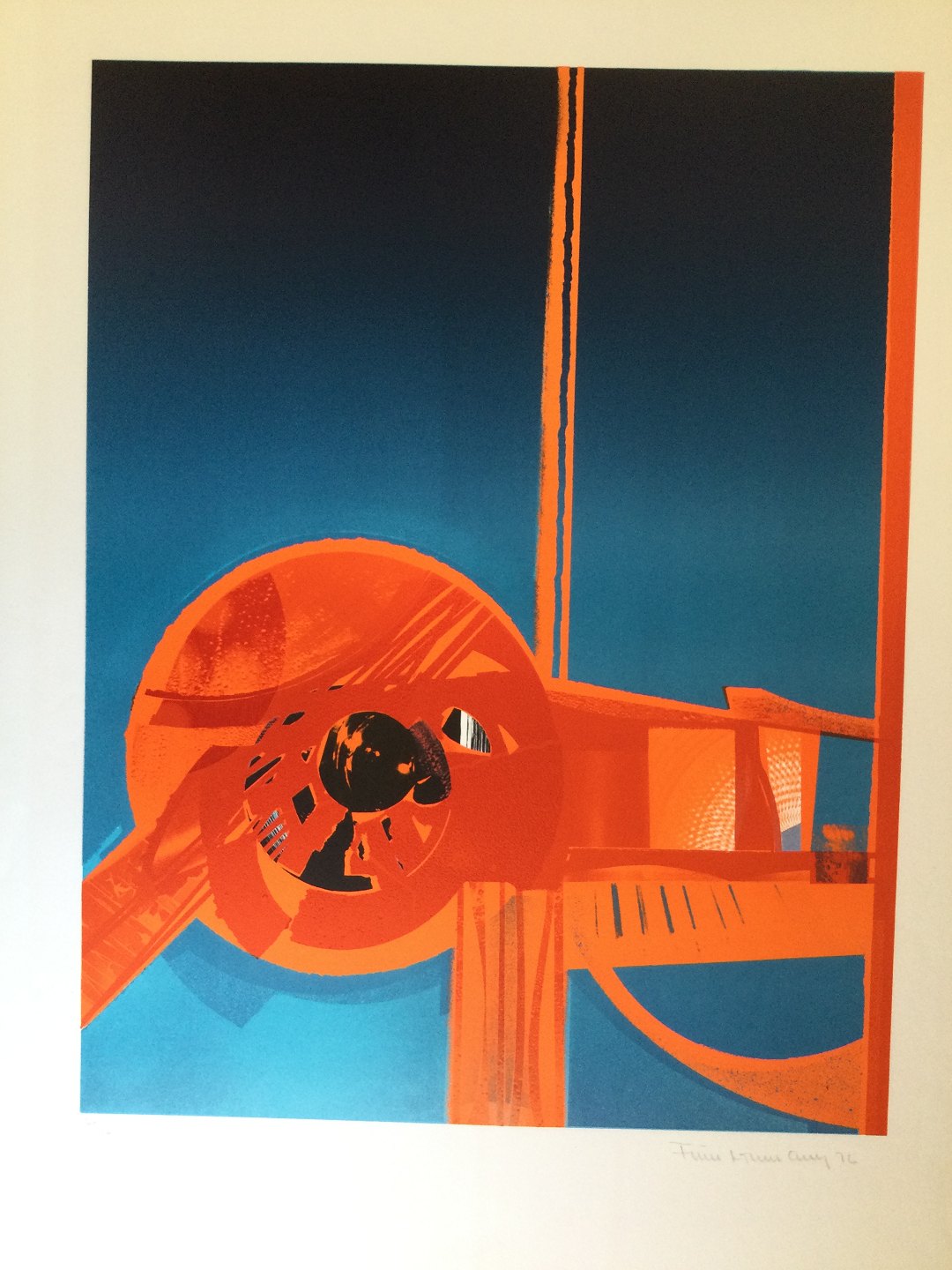 Farvelitografi af Finn Lohmann - Komposition 1976.