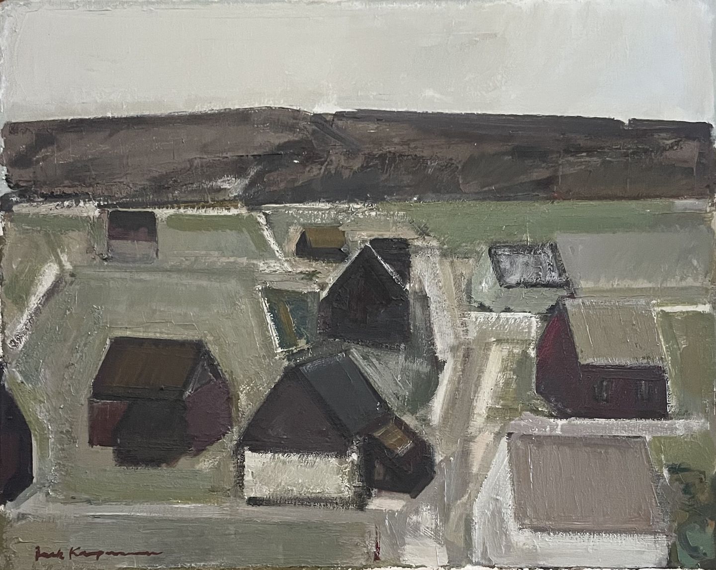 Motiv fra Færøerne, olie maleri på lærred, monteret i ny lys naturramme.