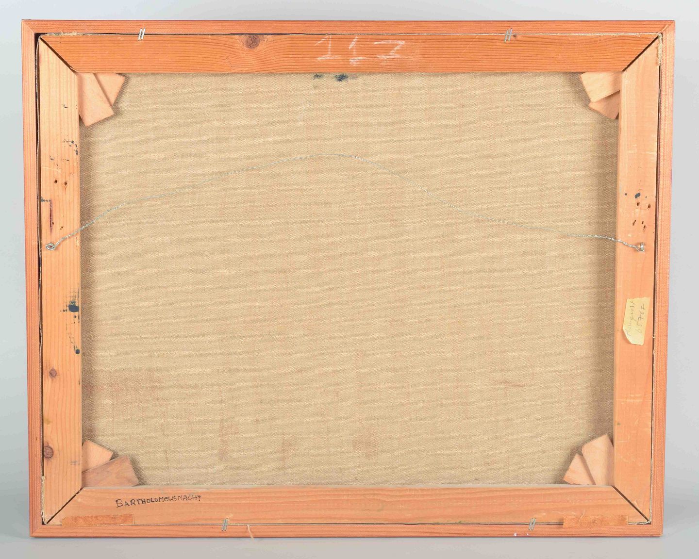 Et ekspressivt nattebymotiv med måne og byens lys under en mørk himmel, skildret med kraftige penselstrøg og intens farvebrug.
