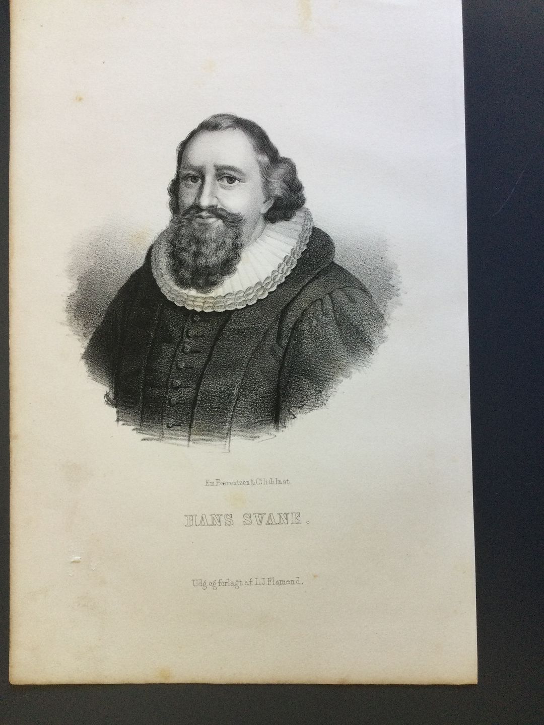 Litografi af Em. Bærentzen - Portræt af Ærkebiskop over Sjælland Hans Svane.