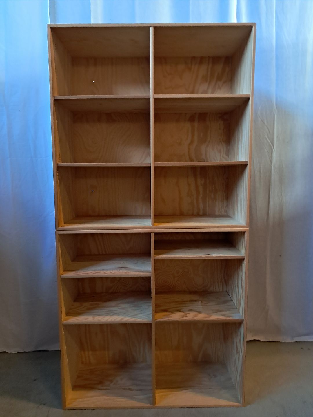 2 Reolkasser i krydsfiner, fra 2000erne.