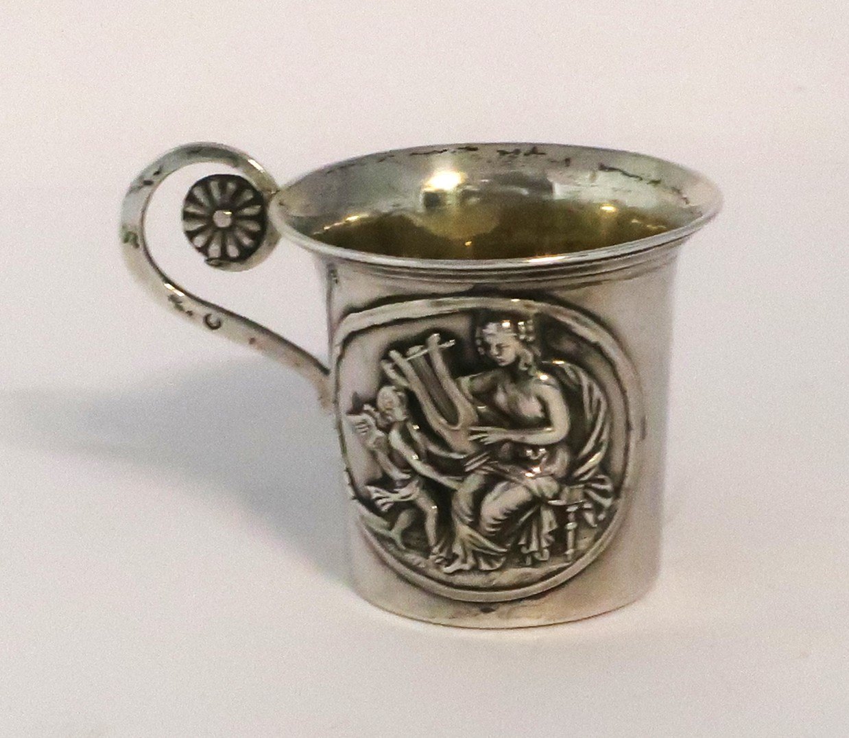 Rusland. Sølv kop med hank (84). Højde 5 cm. Diameter 5,5 cm. Produceret 1835
