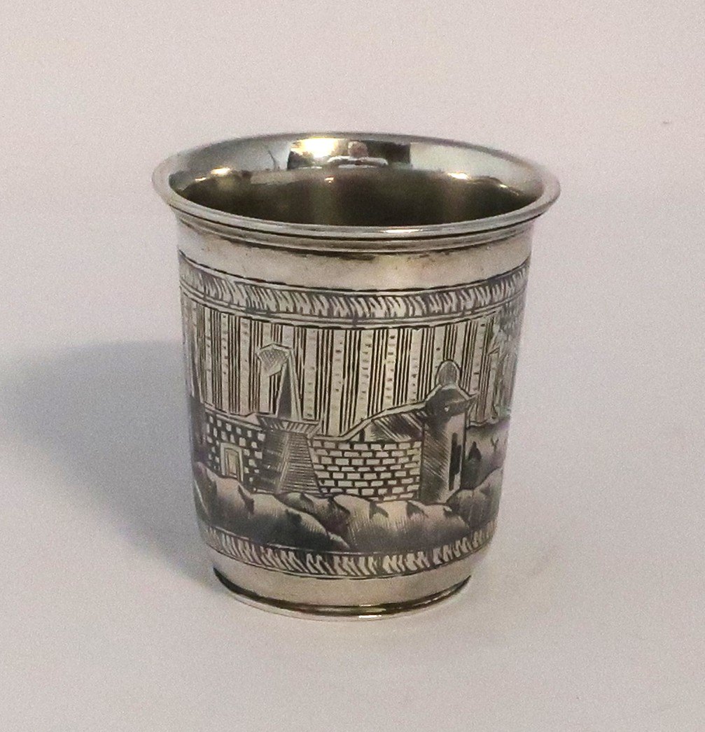 Rusland. Lille sølv bæger med niello (84). Højde 5,5 cm. Diameter 5,1 cm.