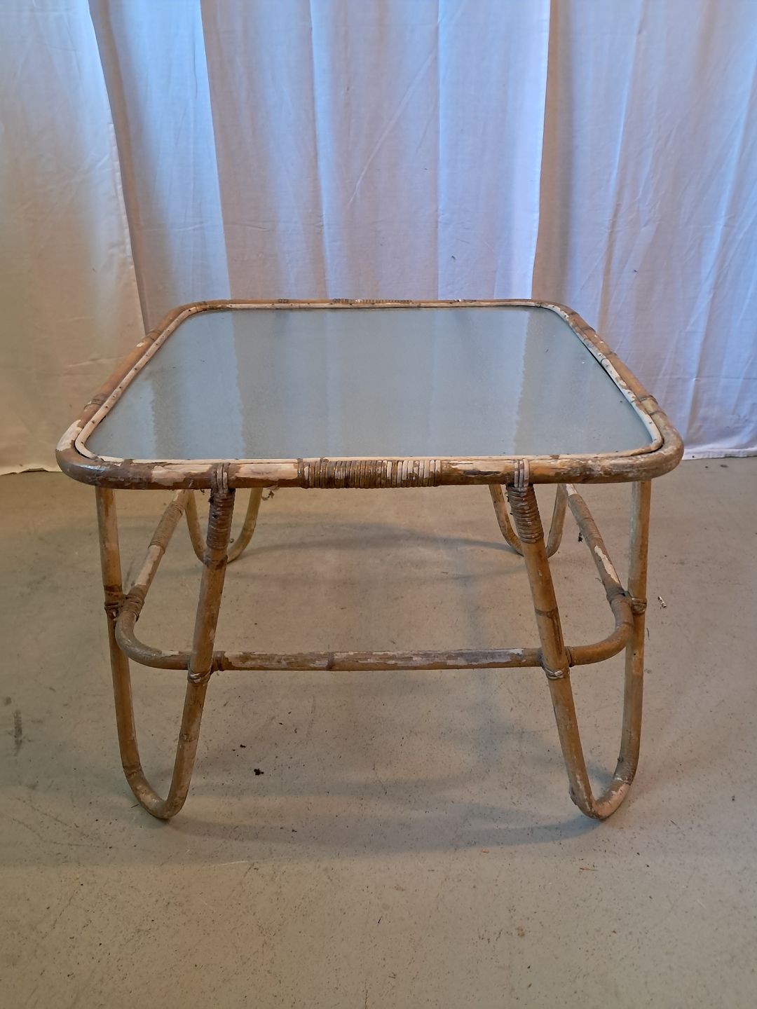 Bambus sofabord med glasplade, fra 1980erne.