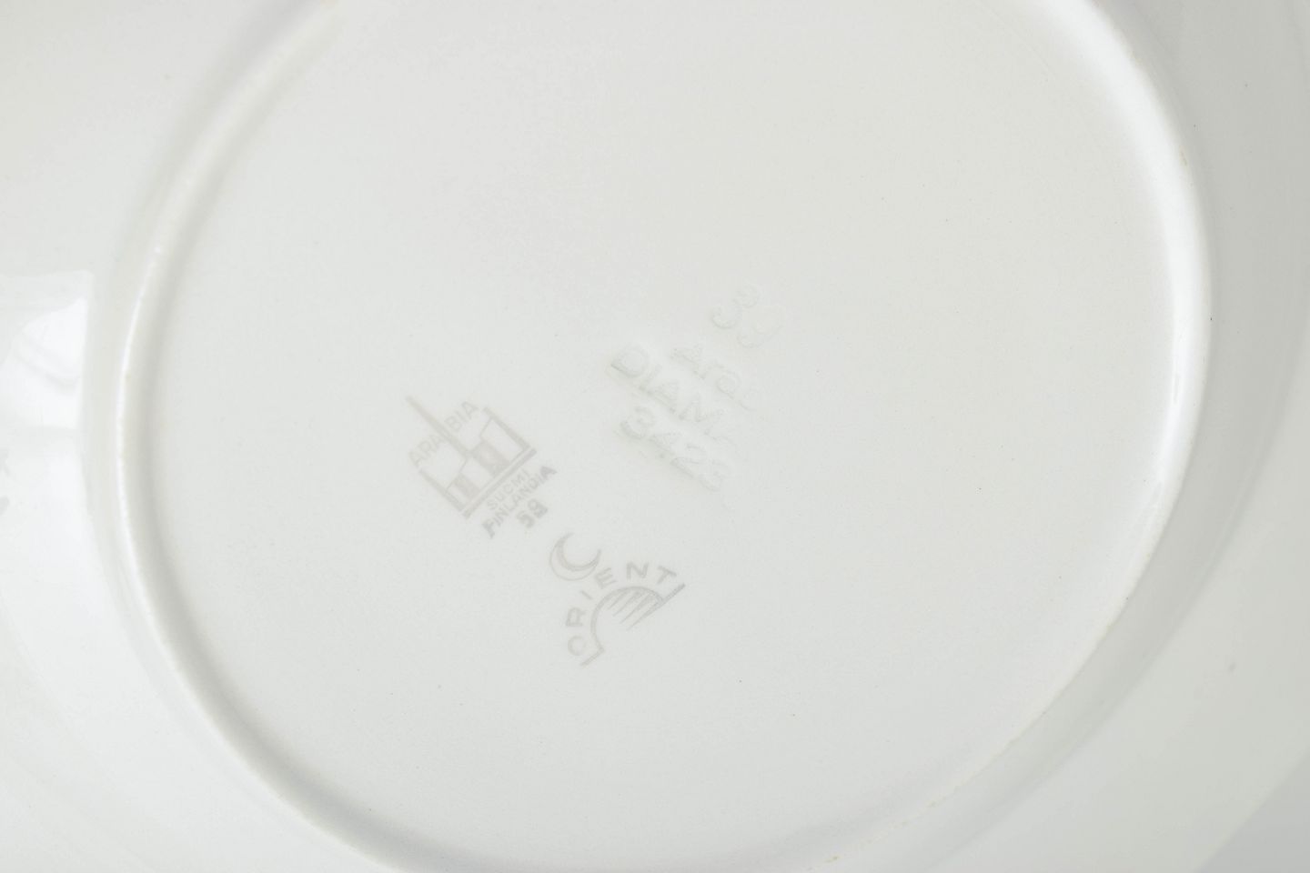 Arabia, grundlagt i 1873 i Helsingfors, er kendt som en af Nordens førende porcelænsproducenter. Serien Orient er et eksempel på fabrikkens Art Deco-inspirerede design fra mellemkrigstiden, kendetegnet ved stiliserede dekorationer og funktionelle former. Arabia er i dag internationalt anerkendt og værdsat blandt samlere for både deres tidlige og senere designs.