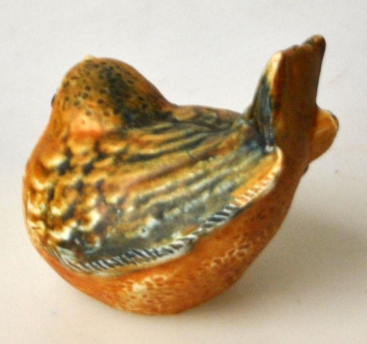 Carlsen, Poul Hauch (1921 - 2006) Danmark: En fugl. Porcelænsmasse. Koloreret. Signeret. L.: 8 cm. H.: 6,5 cm.